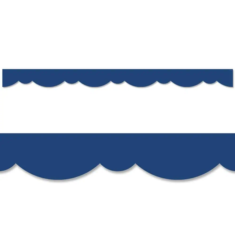 A fun, fresh twist on a solid blue border! This Blue Stylish Scallops Border features a playful double scallop design to create a neat and easy way to edge any bulletin board or classroom display. Great for any type of school setting at any grade level. Also great for use on bulletin boards in an office, a , a college dorm, or a senior living residence. With its versatile scallop design, this bulletin board border can be used alone to create a basic look or layered with another border for a more designer look. The vibrant blue color is perfect for use on seasonal and holiday displays for Christmas, Hanukkah, and 4th of July.