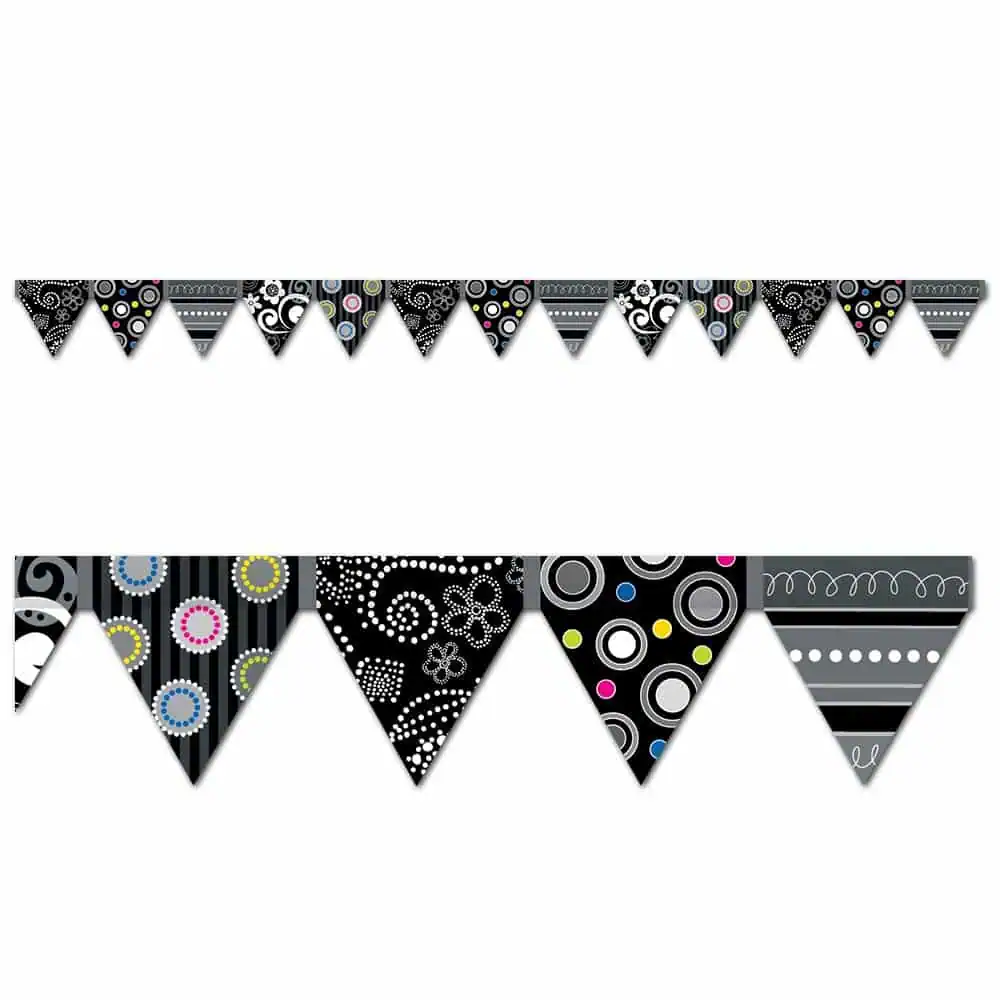 Bring style and sophistication to any space with this unique pennant border! This classic color palette will look great on bulletin boards, doors, and in common areas! 2¾” wide 35 feet per package Coordinates with BW Collection products.