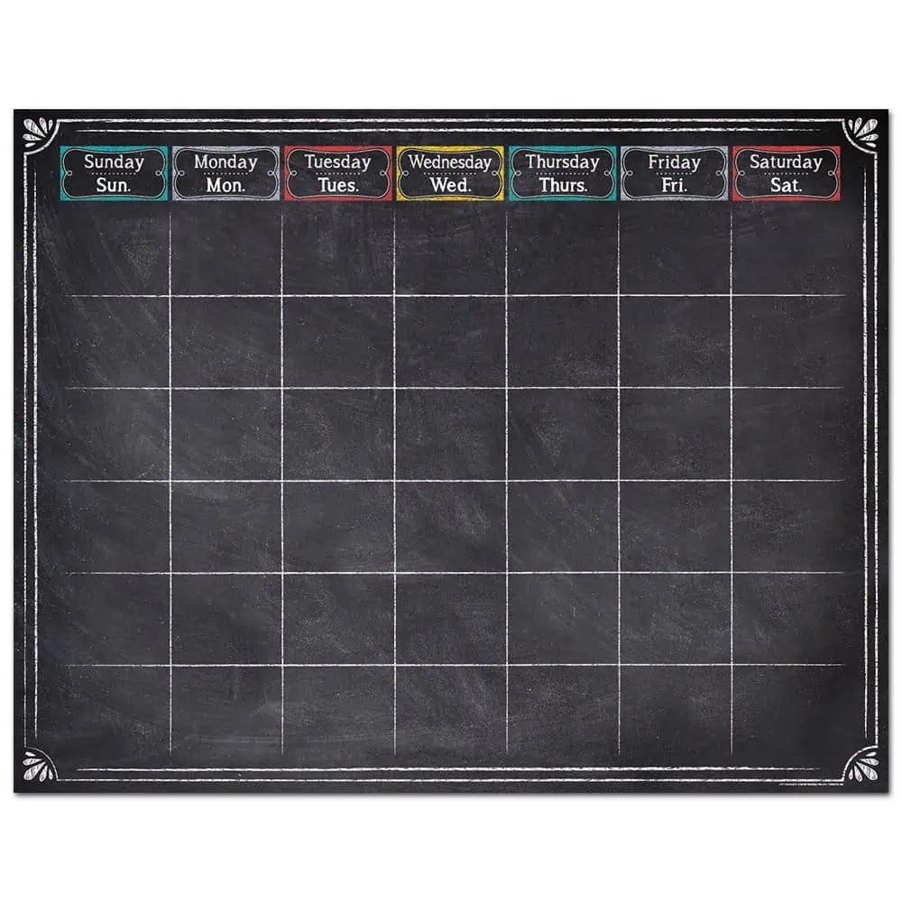 Infuse your classroom with some chalkboard charm! Features big squares for writing in dates or for posting Calendar Days or Calendar Cut-Outs. Calendar measures 28″ x 22″ 2 color; uncoated