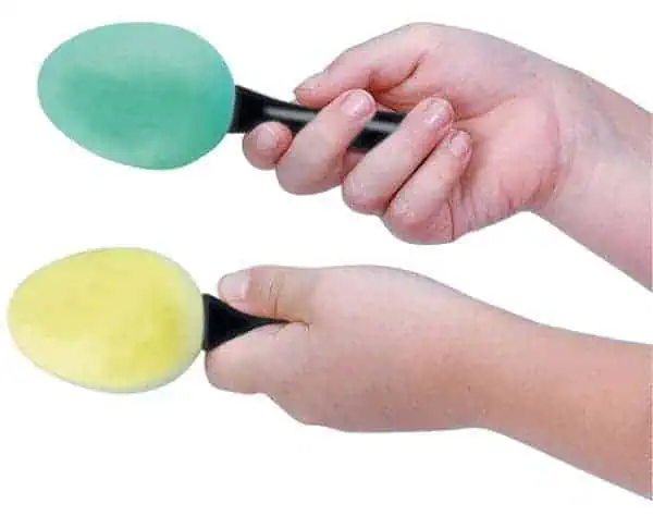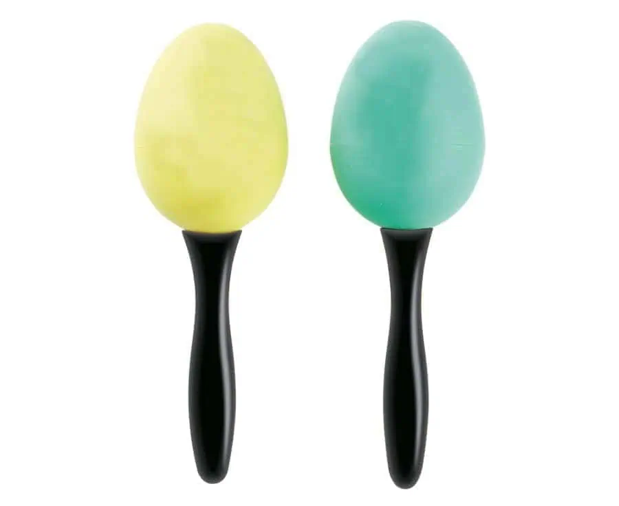 They use these very small maracas very often in class. A couple always belong to different colored instruments. One of this sounds higher, the other deeper and stronger.