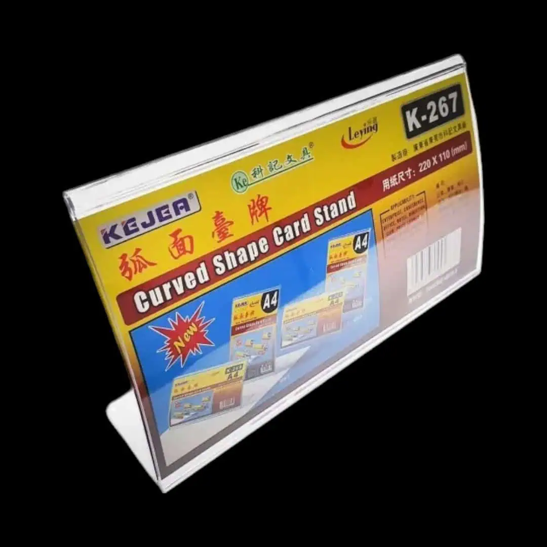 – **Product Name**: Clear L-shaped Curve Card Stand