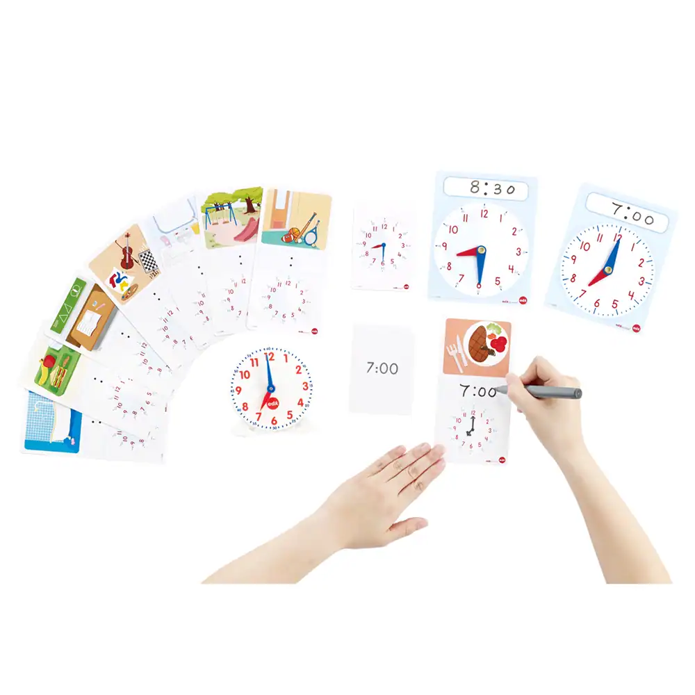 • Set Includes: 1 clock, 25 flash cards, 8 task cards (write-on/wipe-off), 2 clock dials (write-on/wipe-off)