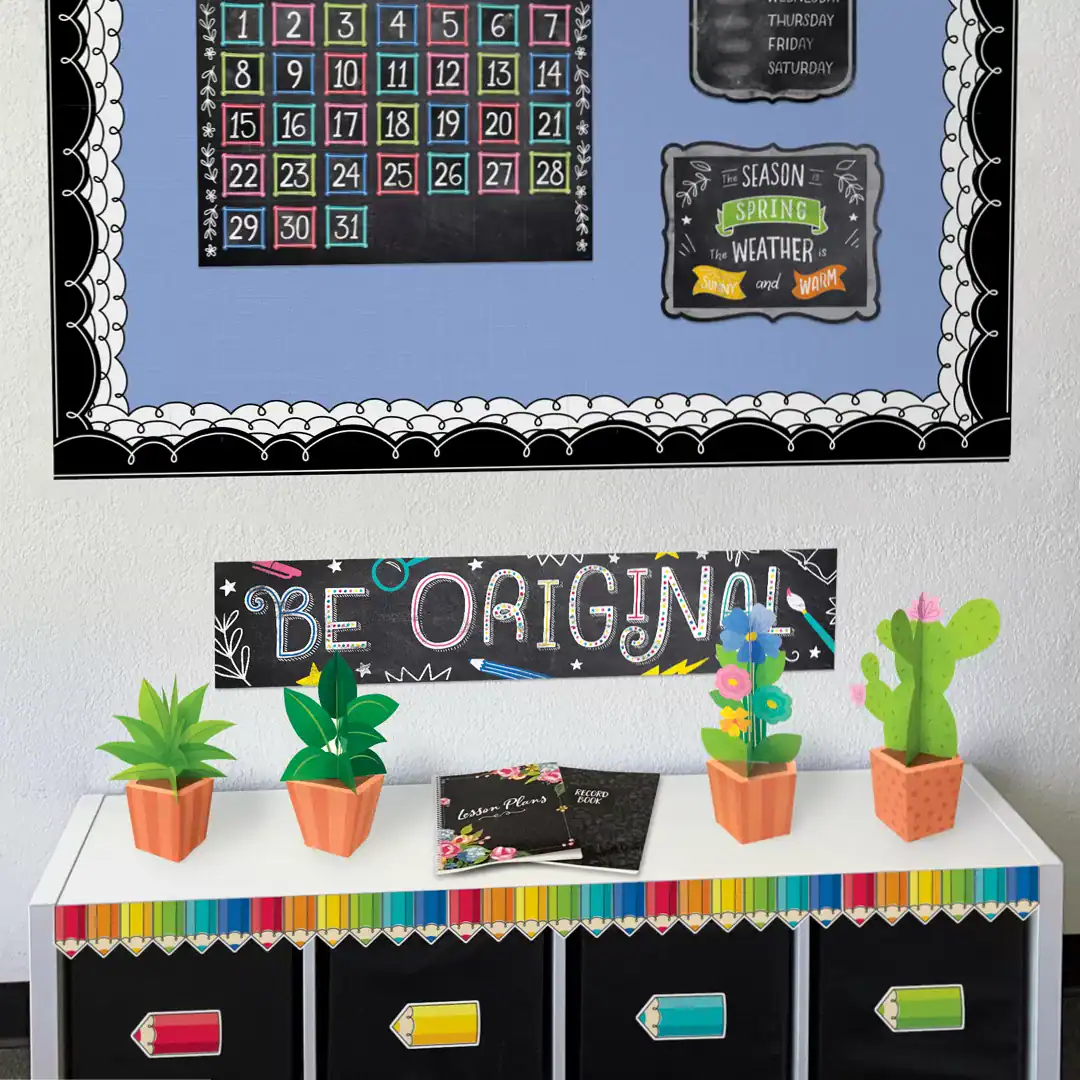 This Colorful Doodle Pencils EZ Border features a rainbow-like array of stubby colored pencils. Use it by itself or layer it with another border for a unique look. Perfect for use on bulletin boards in a wide variety of classroom, office, and school settings. These EZ borders come in smaller strips, which are easier to manage and store. Each package comes with enough borders to complete 2 full bulletin boards.