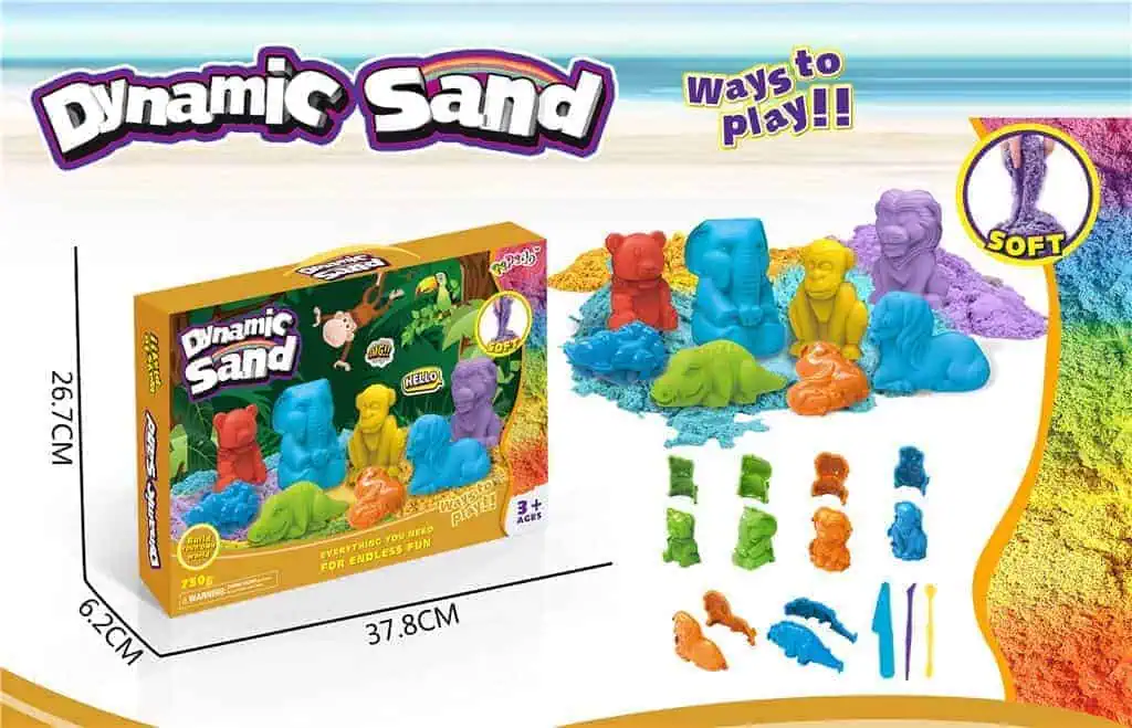 Bring the fun of wet sand indoors with Magic Sand, the moldable sensory toy play sand. This 750 grams resealable bag of Magic.\nSand is the perfect arts and crafts activity gift for kids ages 3 and up,especially those who enjoy sensory toys and as an alternative to modeling clay or slime kits Stretch it, slice it, squeeze it or mold it into incredible sand art. No matter how you use it, sensory sand provides hours of tactile fun. It flows through fingers like real beach sand and leaves hands completely dry. When pressed together, it keeps its shape. It’s so satisfying, you won’t be able to put it down! The unique formula of this mesmerizing, magic sand sticks to itself and not to kids for easy cleanup and storage, and it never dries out so you can create again and again. More than just great fun, moldable sand is a tactile, sensory kids’ toy that can help develop your child’s fine motor skills. Sand play provides a much-needed break from screen time and encourages independent play when learning and working from home.
