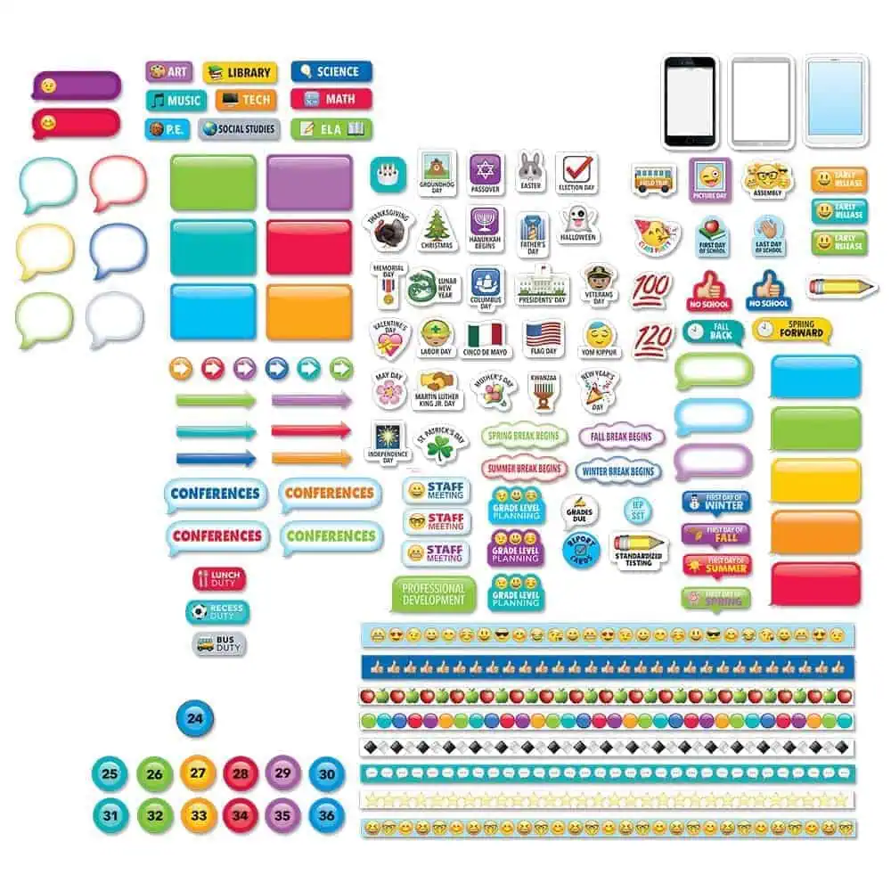 Make teacher lesson planning fun! These Emoji Fun Lesson Planner Stickers bring a bit of digital-inspired happiness to teacher lesson planning. Teachers will love these colorful planner stickers that were developed specifically for teacher lesson plan and record books. This sticker pack includes over 850 stickers to help you get creative, express yourself, and be happy when you are planning!Includes an assortment of planner stickers ideal for marking the events in a teacher’s busy school year: