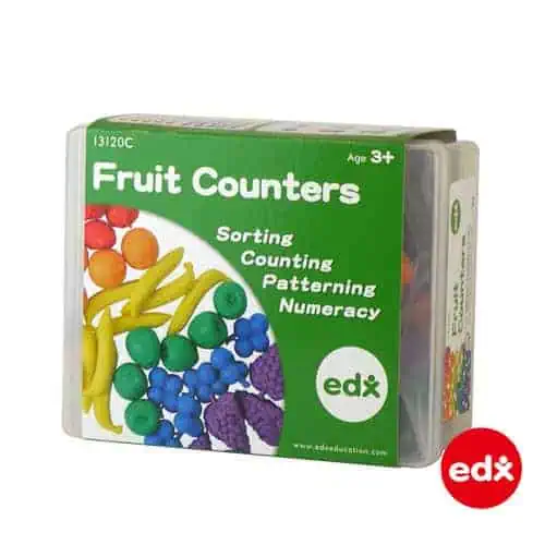 Fruit Counters 6 different fruits and 6 colors – apple, banana, orange, grape,