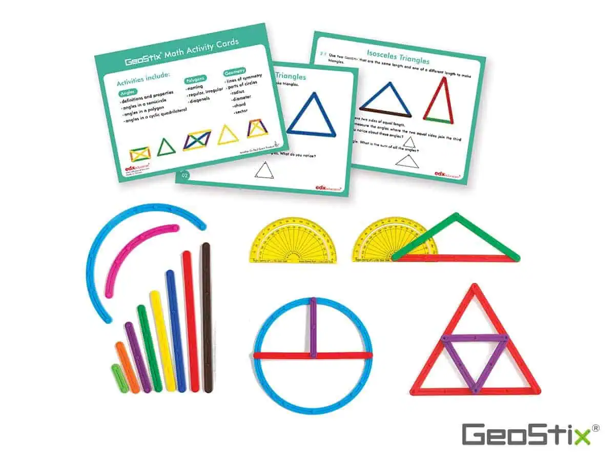 Geostix 8 different length flexible sticks, size range from 2.5cm to 15cm, with quardrants and semi-circles with 2 protractors.