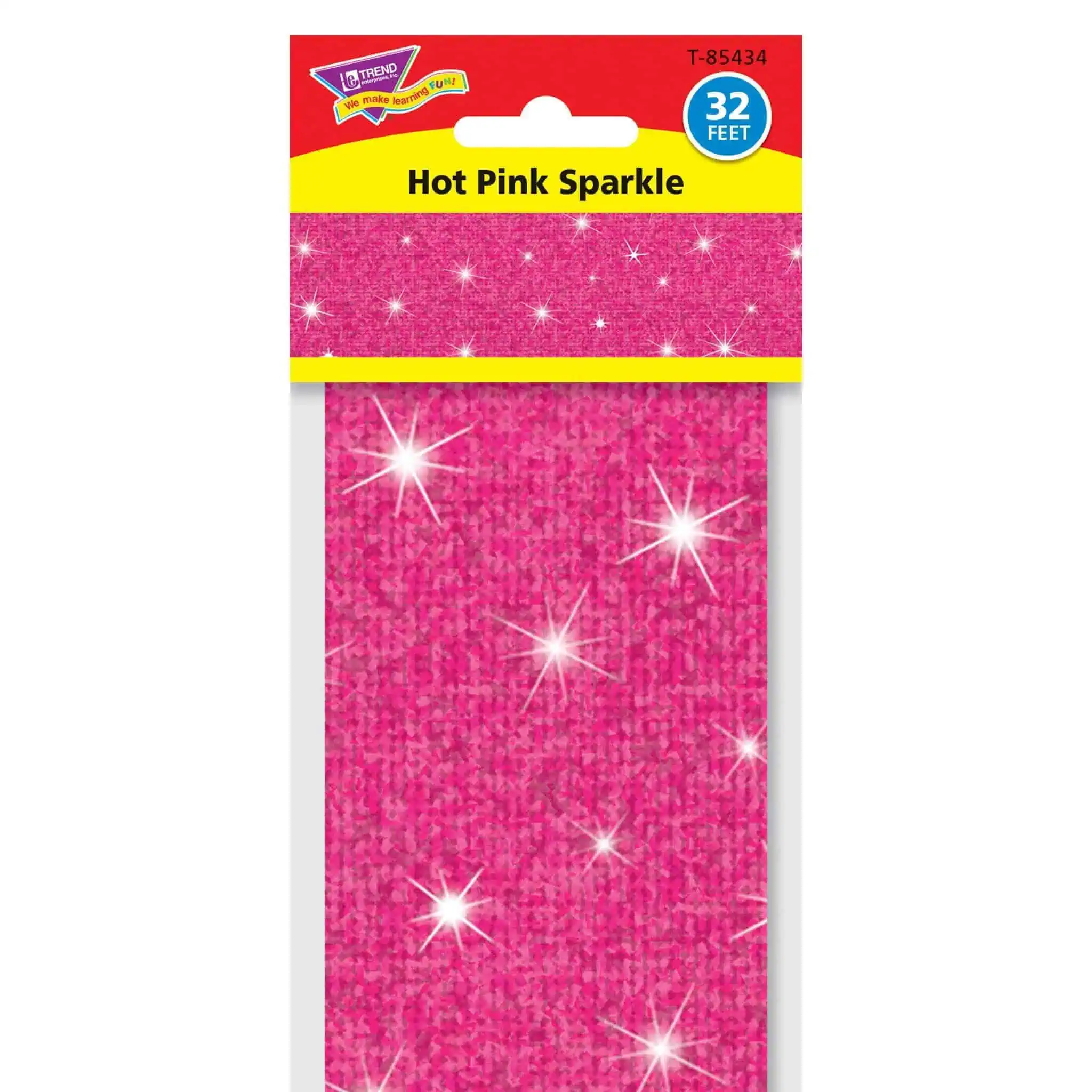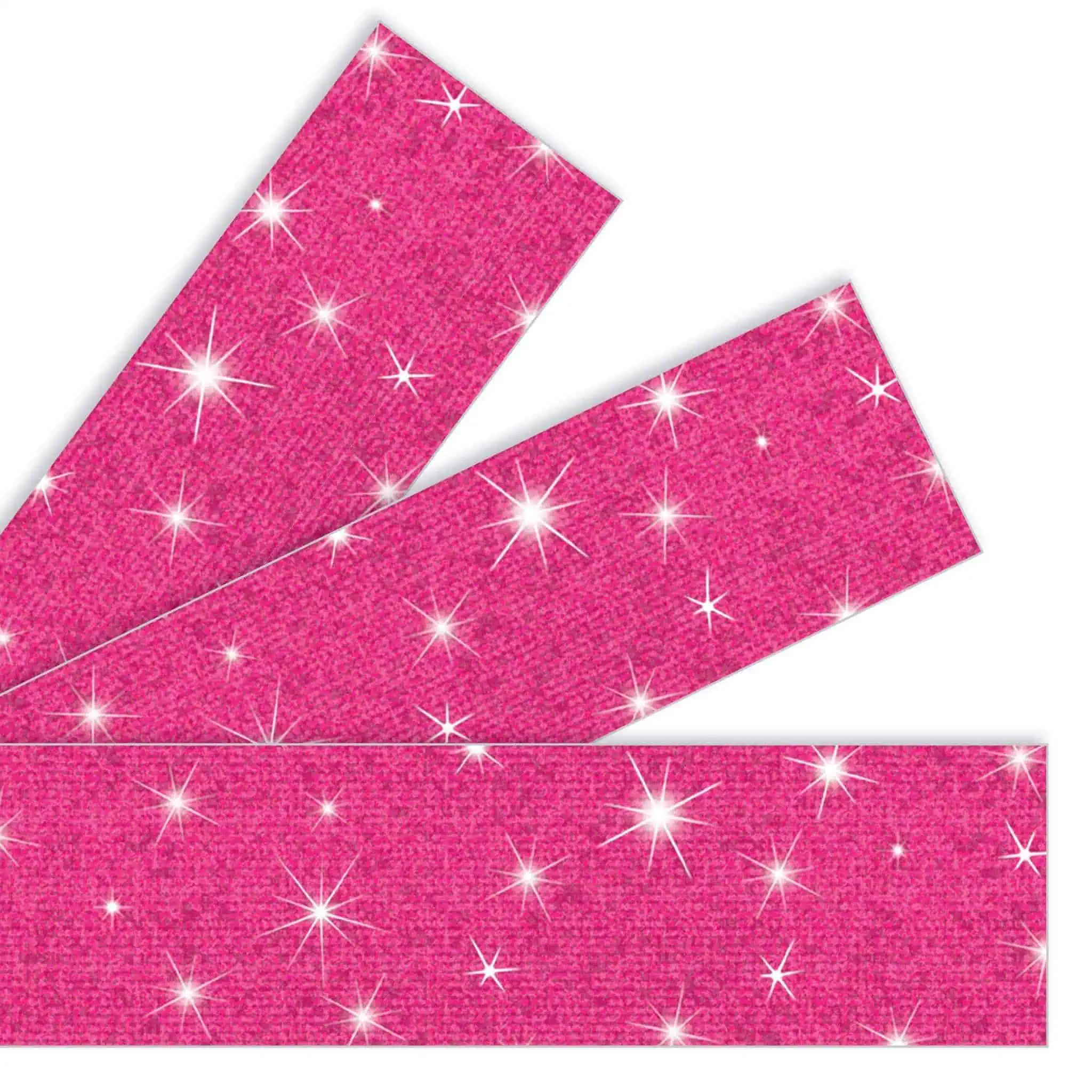 Add a special touch to displays with rich sparkle borders. Straight-edge design fits easily into any space. Layer with patterned borders for an eye-catching look. 2 3/4” x 32 1/2′ per pack; 10 strips. Precut, durable, reusable.