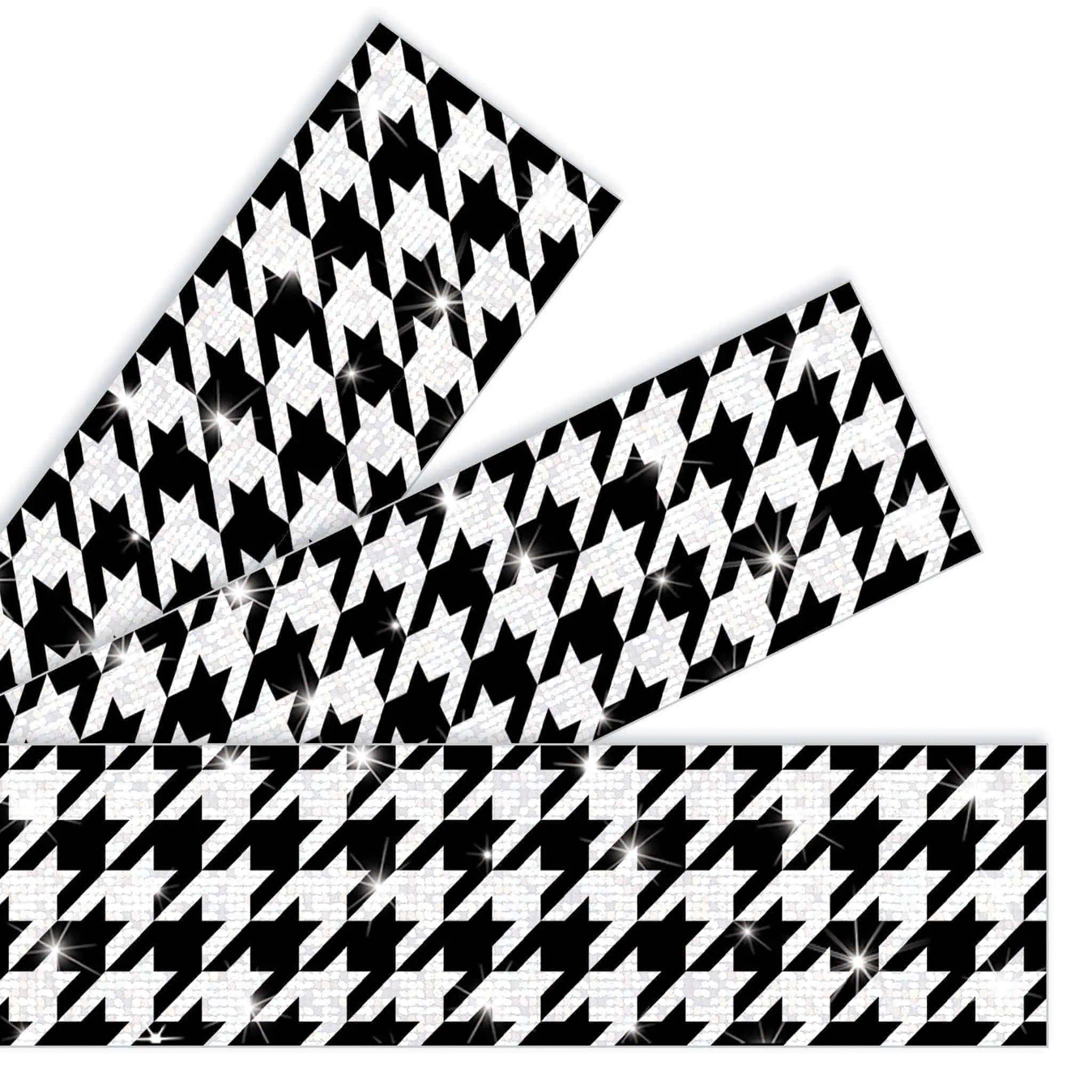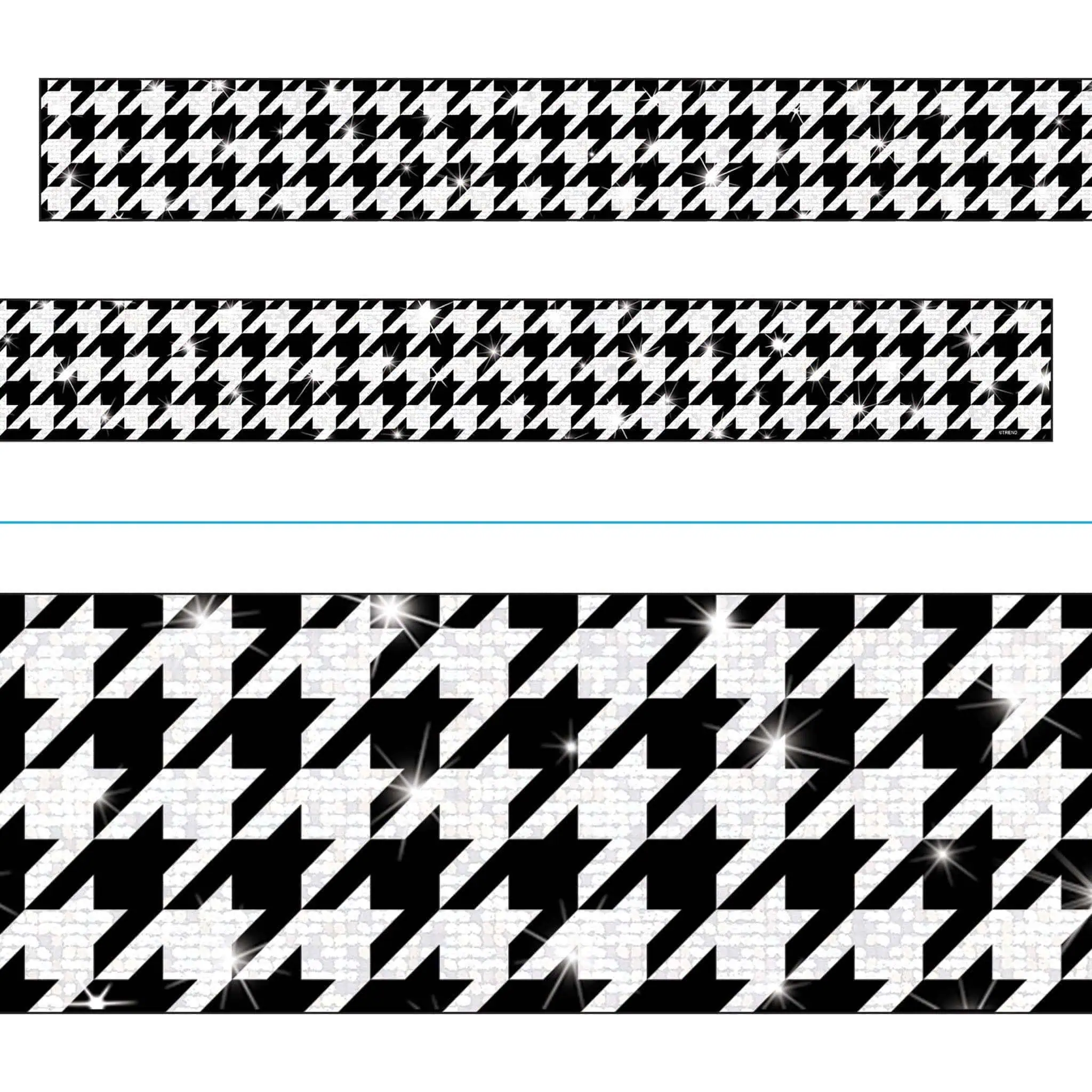 Add a special touch to displays with rich sparkle borders. Straight-edge design fits easily into any space. Layer with patterned borders for an eye-catching look. 2 3/4” x 32 1/2′ per pack; 10 strips. Precut, durable, reusable.