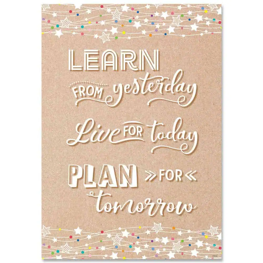 This poster features a simple message that will help anyone achieve success in life: “Learn from yesterday. Live for today. Plan for tomorrow.”