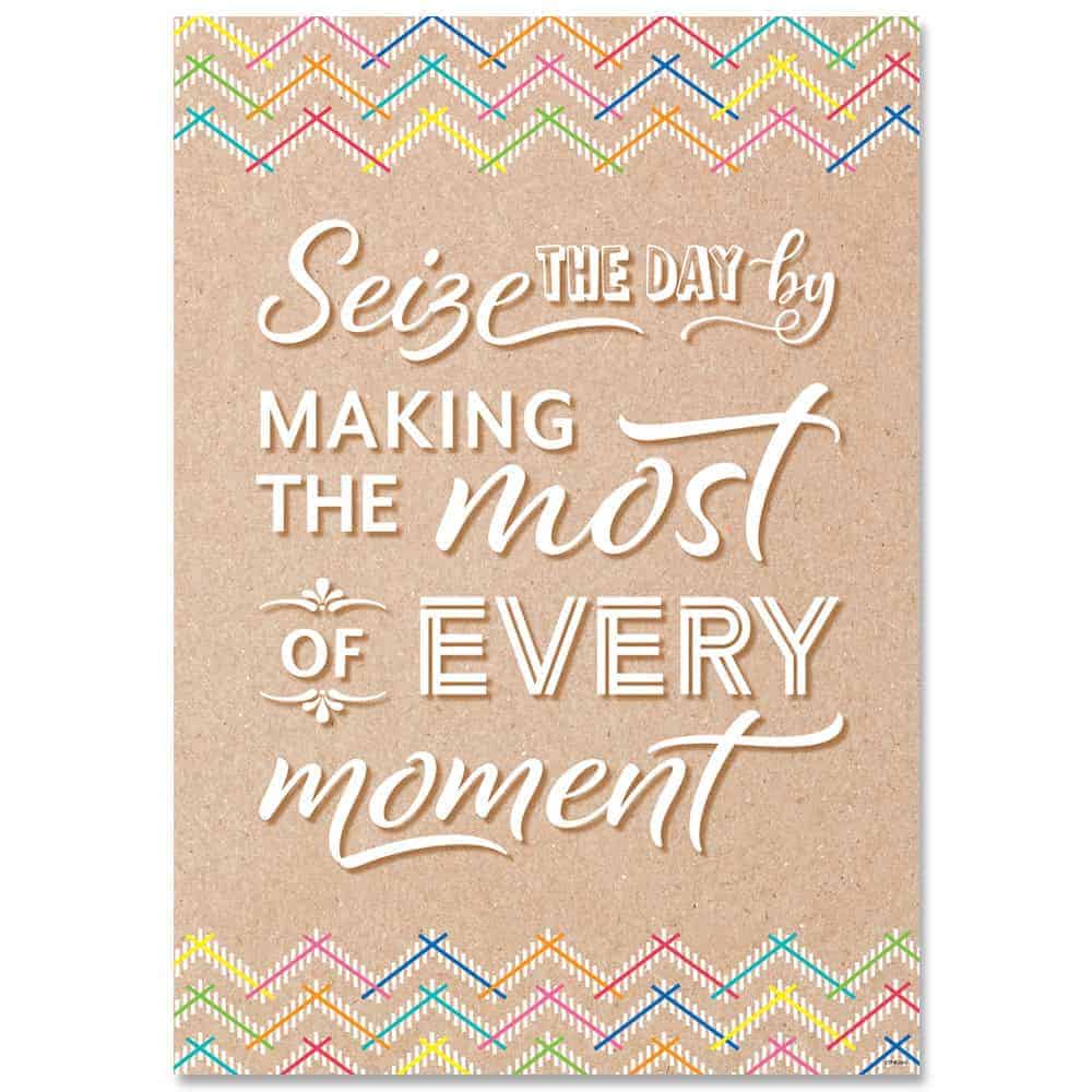 Encourage learners to make the best use of their time by displaying this poster, which features the message of carpe diem: “Seize the day by making the most of every moment.”