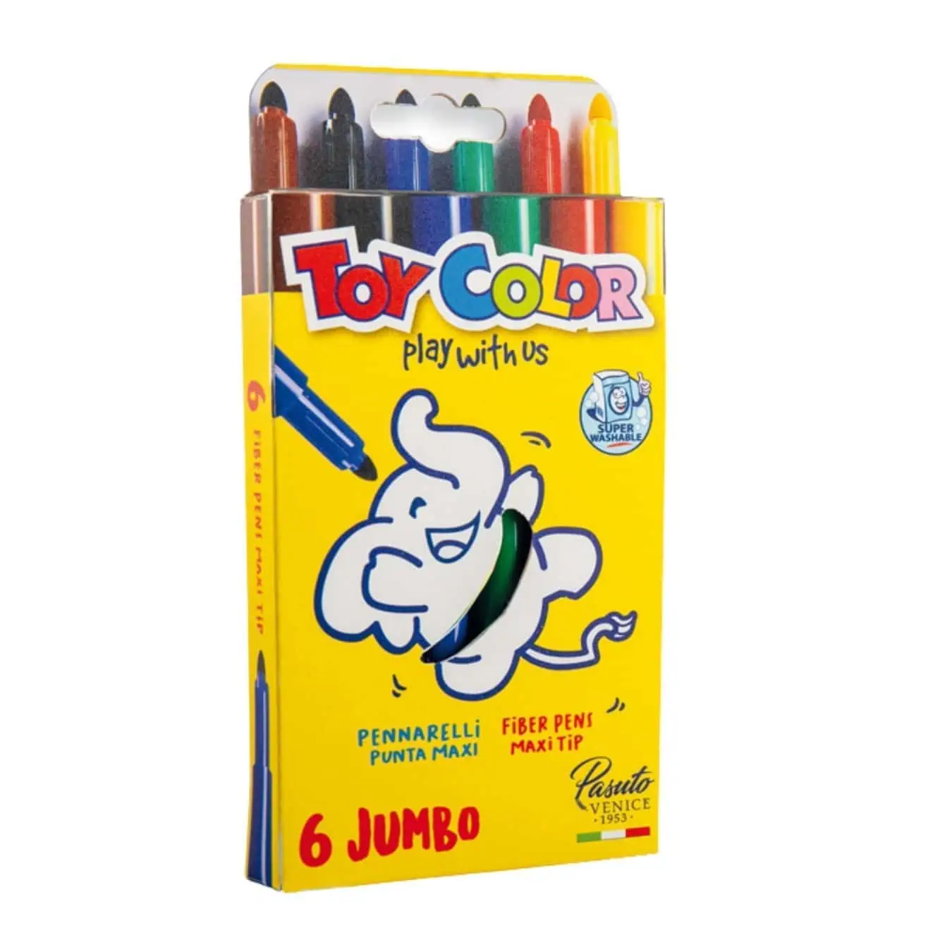 Jumbo Box with 6 fiber pen with 5 mm conical tip If you want to color large areas of drawing paper in a short time you can use the Jumbo large tip markers by Toy Color.