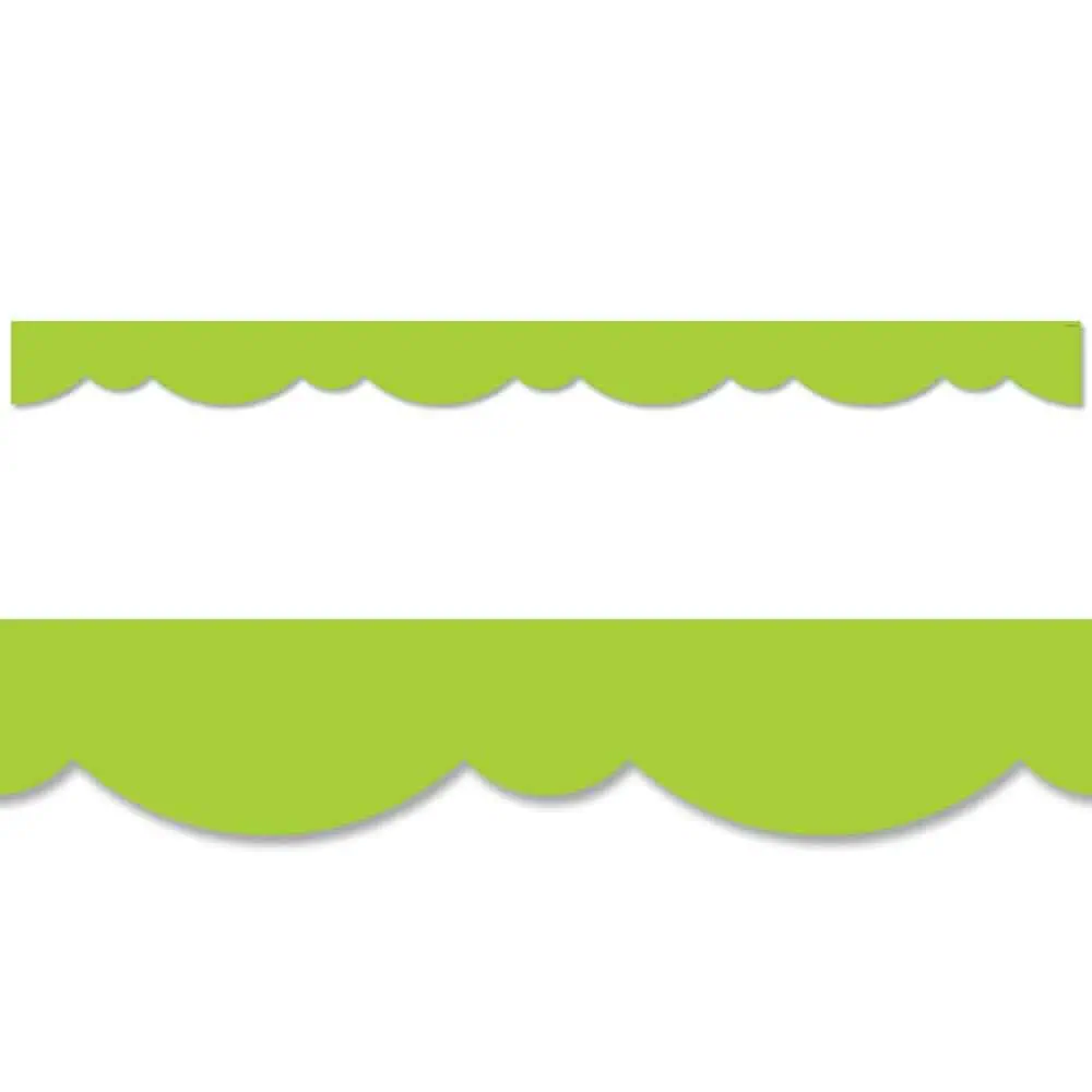A fun, fresh twist on a solid lime green border! This Lime Green Stylish Scallops Border features a playful double scallop design to create a neat and easy way to edge any bulletin board or classroom display. Great for any type of school setting at any grade level! Also great for use on bulletin boards in an office, a , a college dorm, or a senior living residence. With its versatile scallop design, this bulletin board border can be used alone to create a basic look or layered with another border for a more designer look.