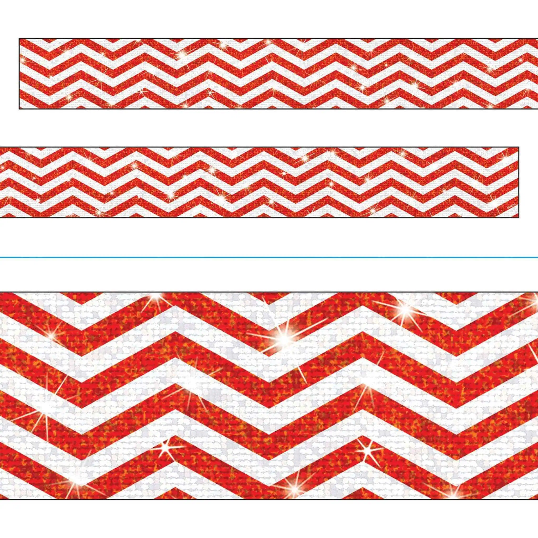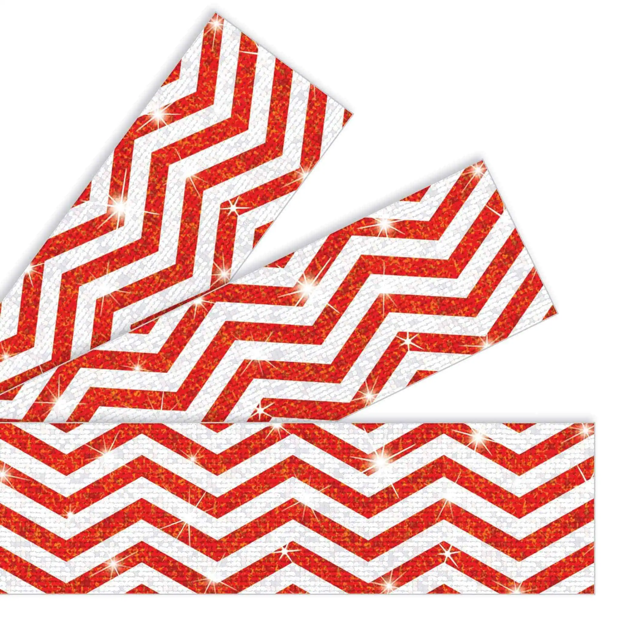 Add a special touch to displays with rich sparkle borders. Straight-edge design fits easily into any space. Layer with patterned borders for an eye-catching look. 2 3/4” x 32 1/2′ per pack; 10 strips. Precut, durable, reusable.