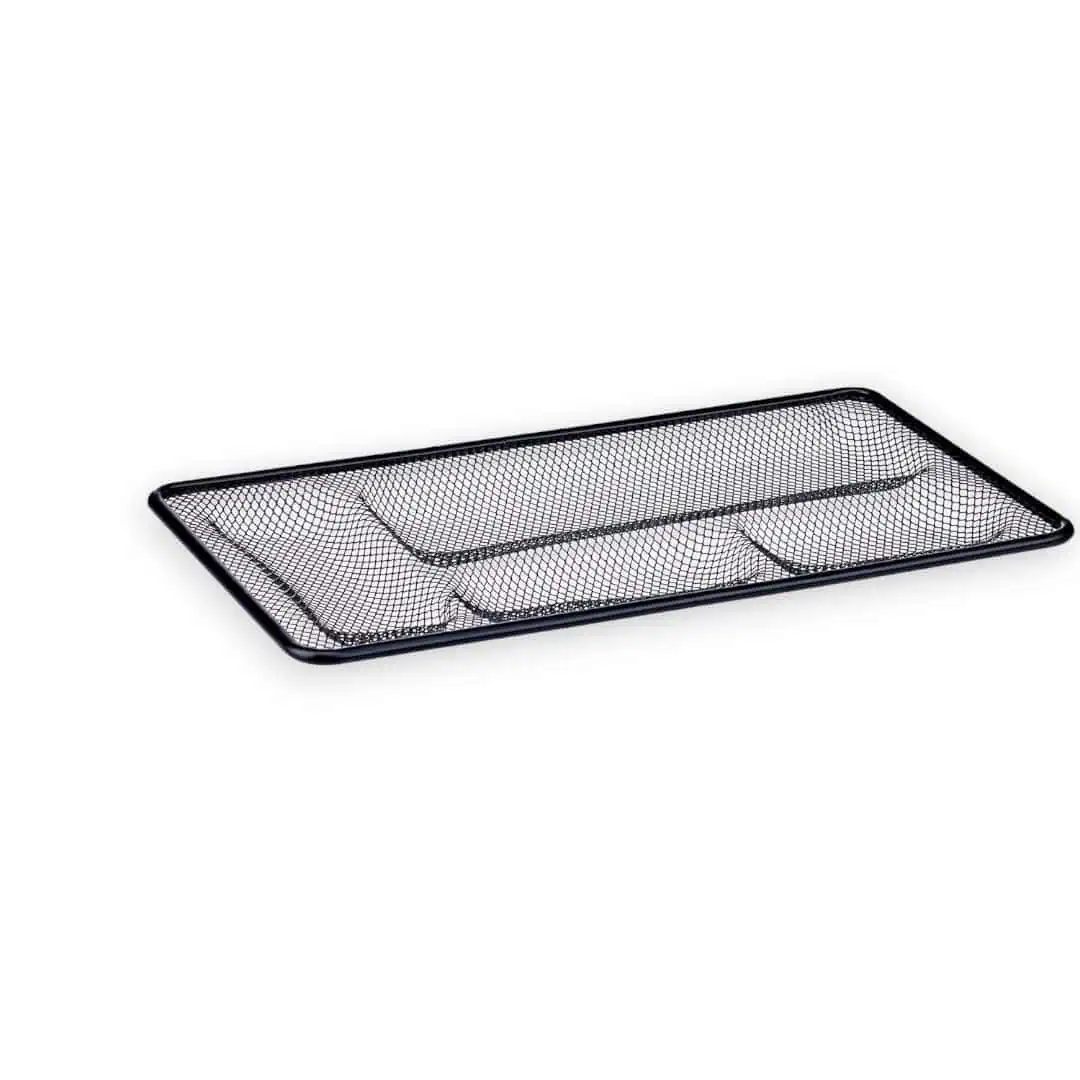The Metal Mesh Small Organizer BLACK is a compact and durable storage solution designed to keep your workspace tidy. Key features include a sturdy metal mesh construction for long-lasting use, a sleek black finish that complements any decor, and multiple compartments for organizing office supplies, stationery, or personal items. Its open design allows for easy access and visibility of contents, while the non-slip base ensures stability. This organizer is ideal for decluttering desks, countertops, or drawers, making it a practical and stylish addition to any home or office.