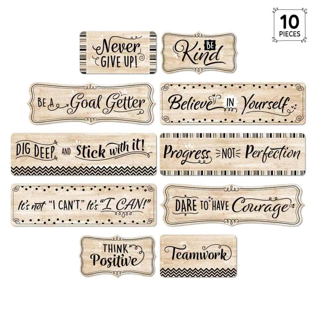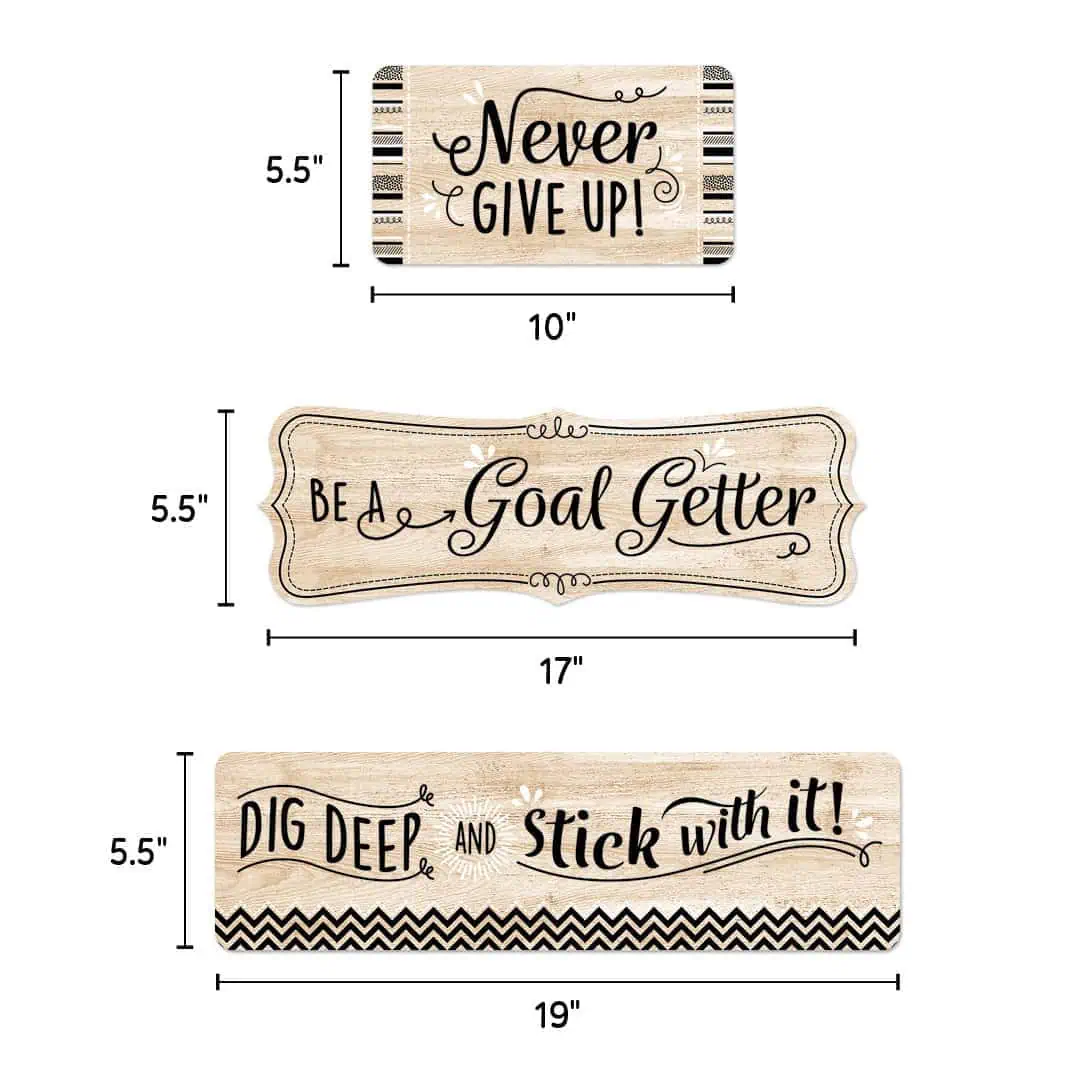 Help build tomorrow’s leaders by instilling in them the confidence, resiliency, and growth mindset they need to succeed with these Core Décor Mindset Matters Headlines. These headlines feature a classic style with black and white core patterns on a neutral wood background and can stand-alone as motivational messages or be displayed together on a bulletin board to create a meaningful reminders space. This versatile set is the perfect addition to any classroom or anywhere a little inspiration is needed!