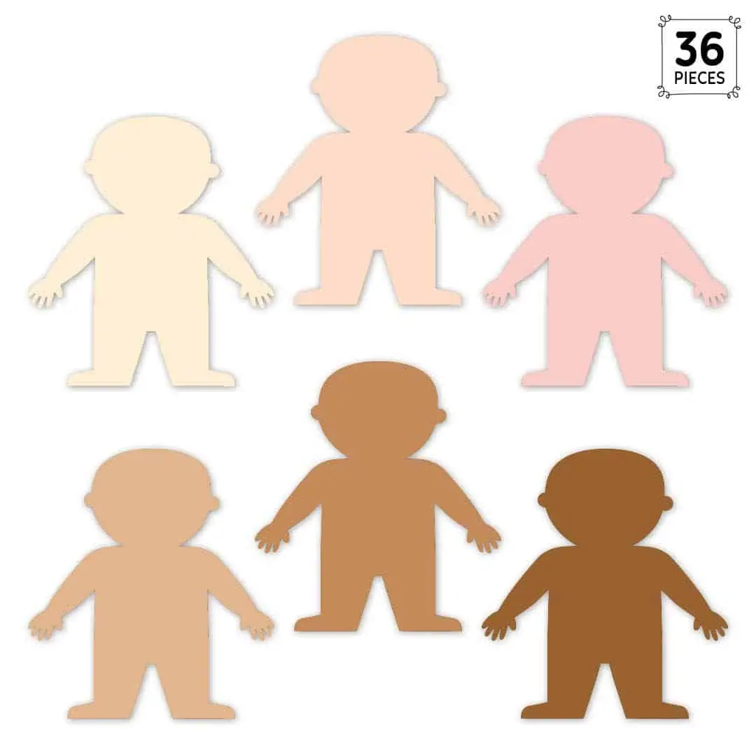 Recognize and celebrate diversity with these Multicultural People 6″ Designer Cut-Outs. Featuring the colors of the human family, these people cut-outs are perfect for self-portraits, crafting projects, bulletin board accents, writing prompts, learning center activities, cubby tags, and more!