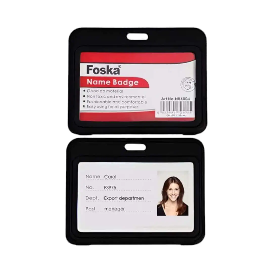 BLack Name Badge with Clip and Safety Pin by Foska. Size: 90x57mm