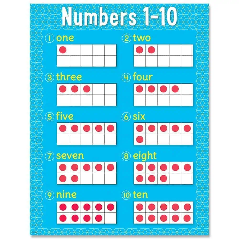 This Numbers 1-10 Chart is great for direct instruction or as a reference for students practicing this math concept. Use this math basic skills learning chart in a daycare, preschool, elementary school classroom, or homeschool environment. Gr. PreK-K.