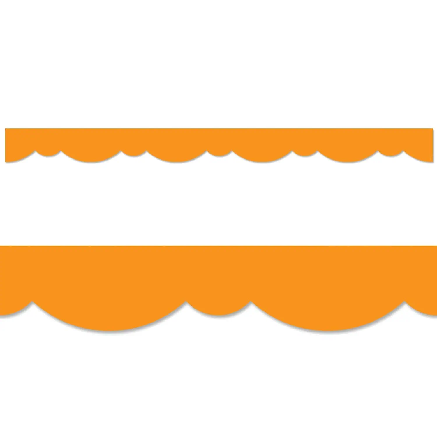 A fun, fresh twist on a solid border! This Orange Stylish Scallops EZ Border features a playful double scallop design to create a neat and easy way to edge any bulletin board or classroom display. Also great for use on bulletin boards in an office, a church, or a college dorm. With its versatile scallop design, this bulletin board EZ border can be used alone to create a basic look or layered with another border for a more designer look. These new EZ borders come in smaller strips, which are easier to manage and store. Each package comes with enough borders to complete 2 full bulletin boards.