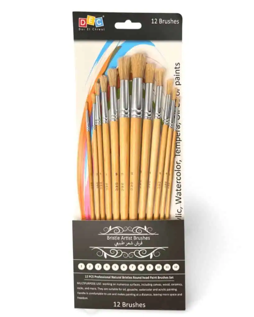 All Purpose Painting Needs: Set of 12pcs bristle paint brushes in various sizes, including size #0, 1#, 2#, 3#,4#, 5#, 6#, #7, #8 #9 #10 #11#12.