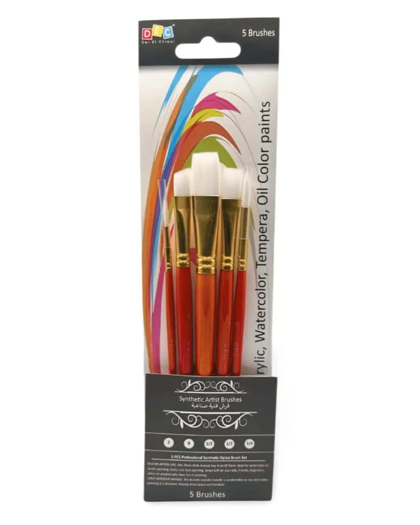 This acrylic artist paint brush set includes 5 different sizes which will meet most of your creative painting needs, from thick strokes to fine detailing. Use with acrylic, watercolouor, Tempea, Made from solid birch wood, with UV paint finish, comfortable grip and durable characteristic. Short handle gives your more sturdy precision.