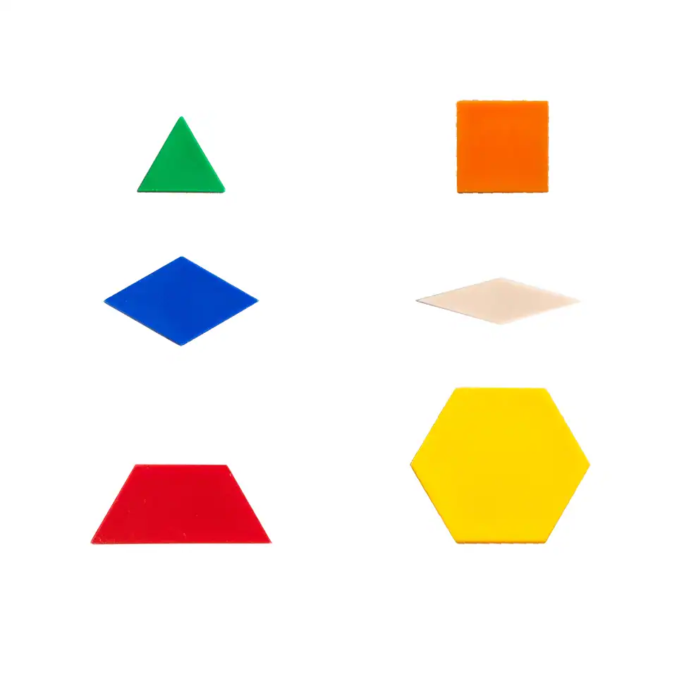 • Description: Pattern Blocks are both a play resource and a tool for learning in mathematics which are used to develop a range of mathematical concepts, such as geometry, symmertry, angles, fractions, perimeter and area. A set includes 100 plastic pattern blocks, 12 x 2-sided activity cards with 3 levels of difficulty