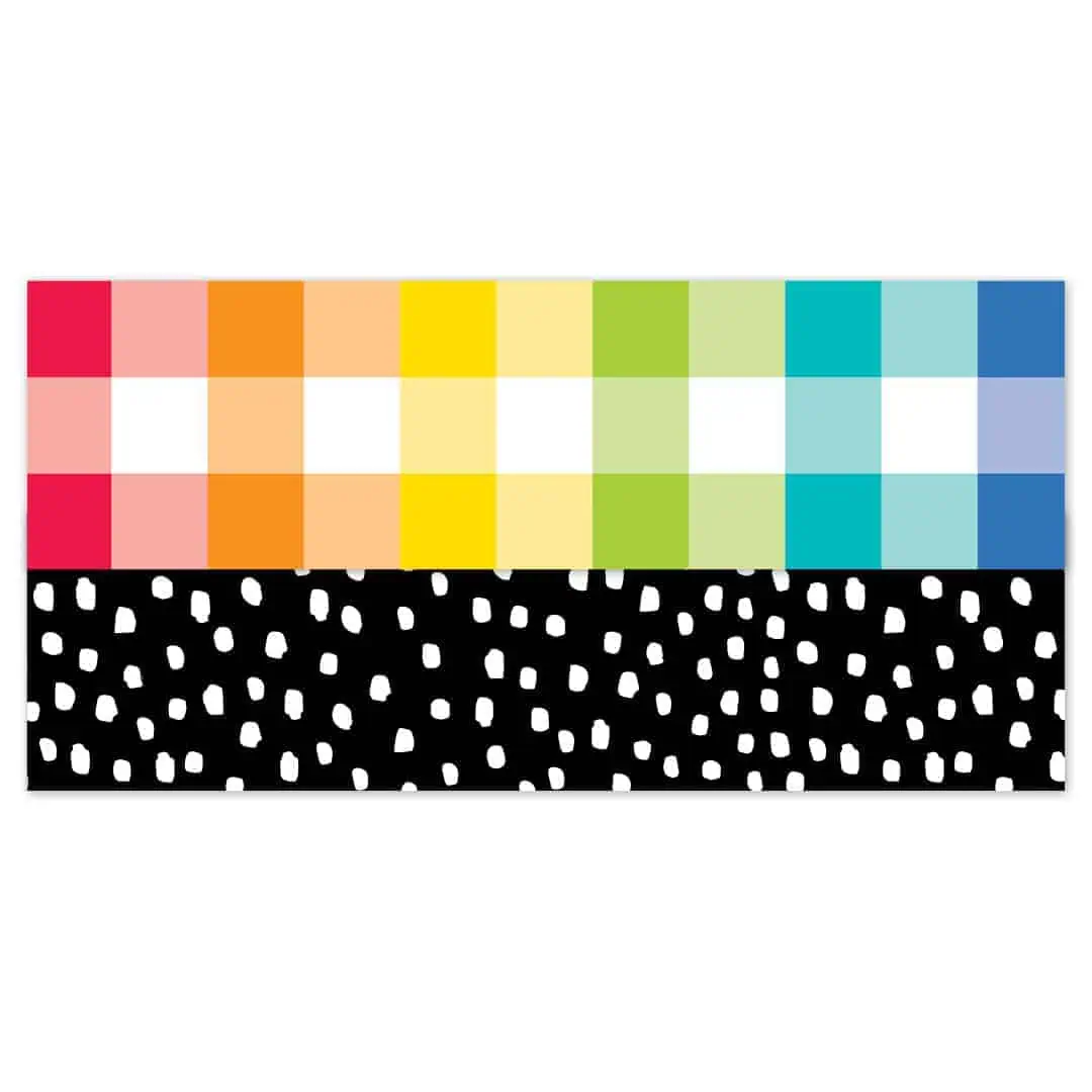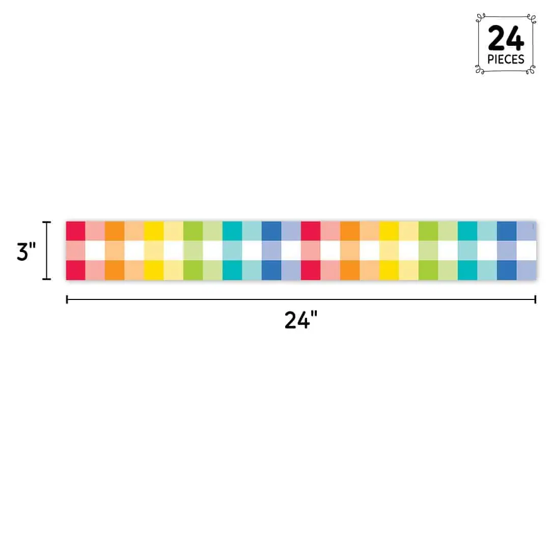 The bright and colorful Rainbow Buffalo Check EZ Border can be used by itself to liven up any wall display or layered with another border. Mix and match for a unique look. Perfect for use on bulletin boards in a wide variety of classroom, office, and school settings. These EZ borders come in smaller strips, which are easier to manage and store. Each package comes with enough borders to complete 2 full bulletin boards.