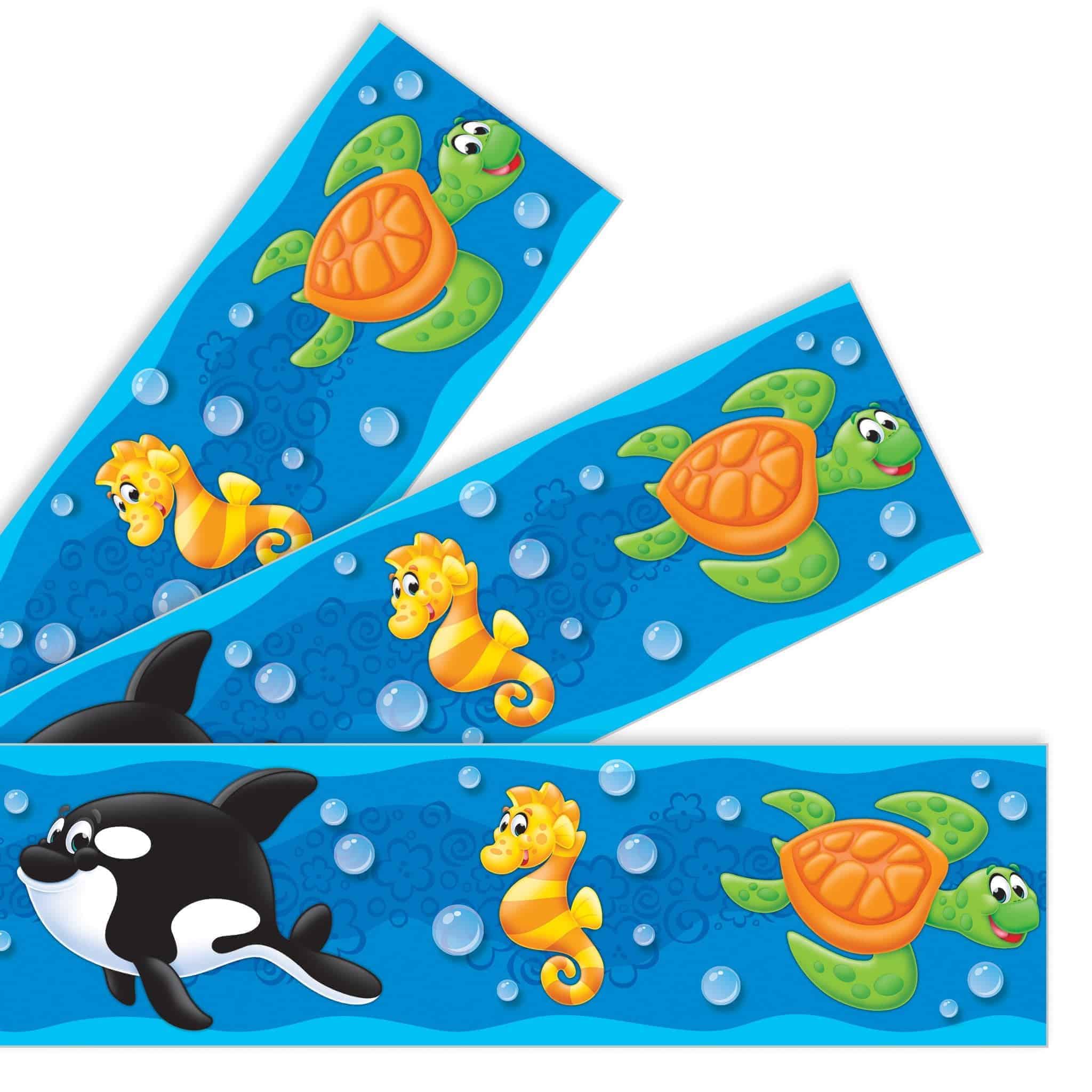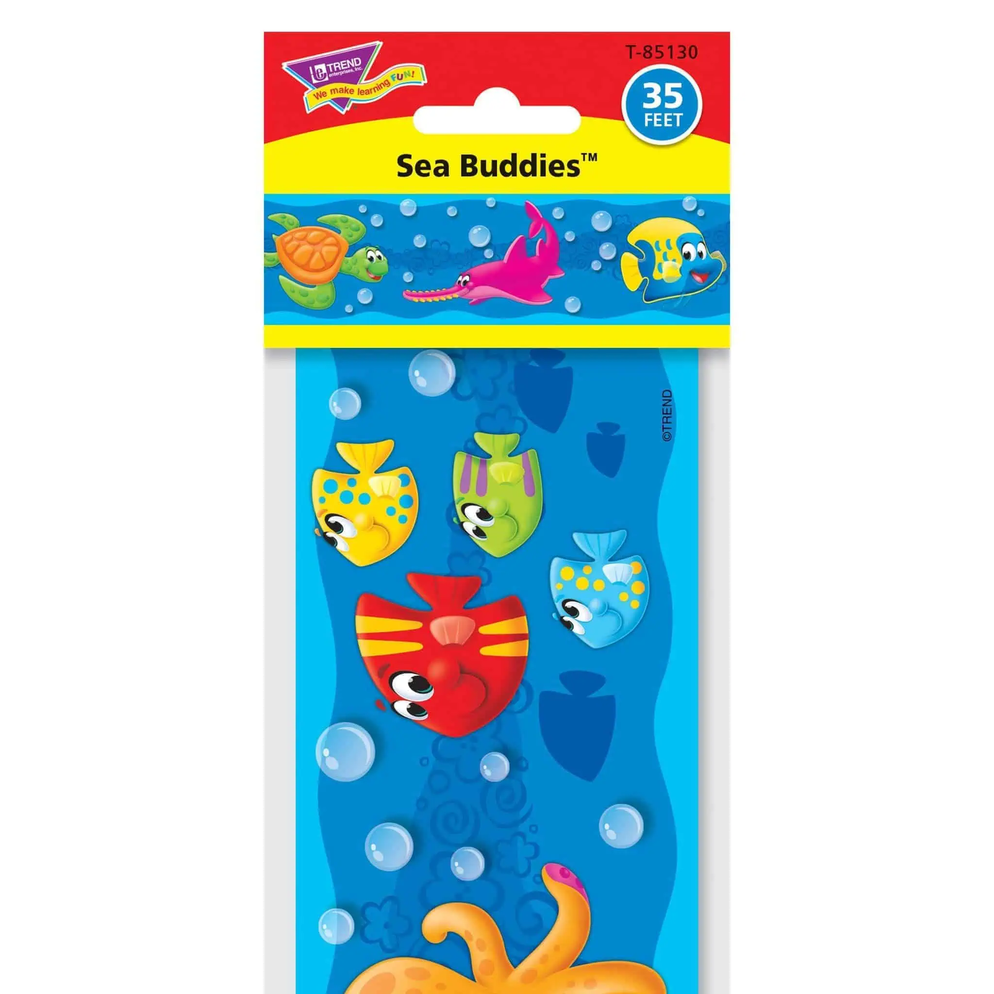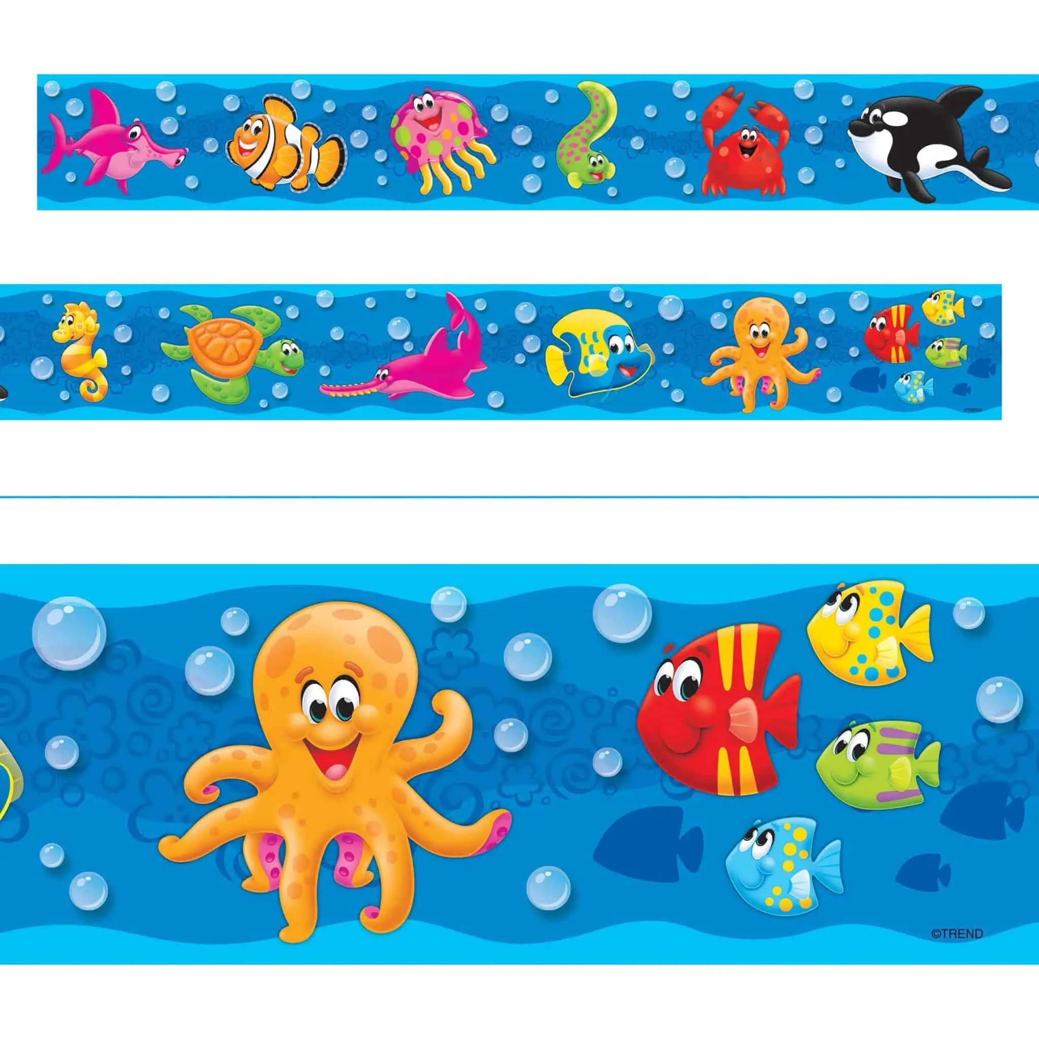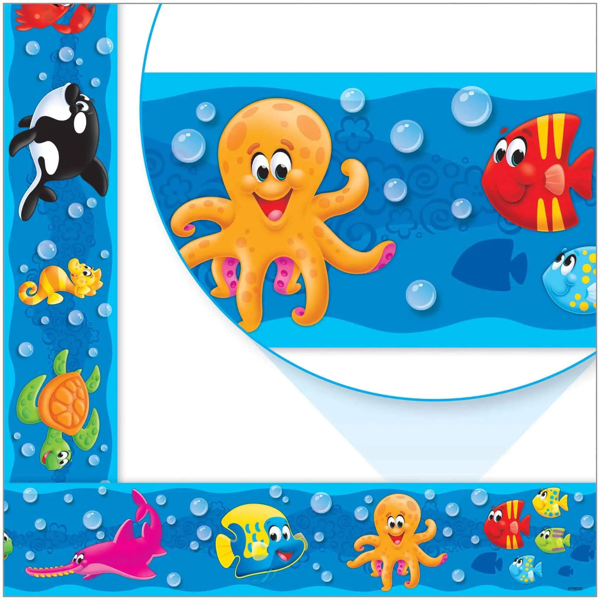 Energize spaces and places and set the stage for learning success with contemporary designs and fun patterns. Showcase student work; display bulletin boards with flair; add pizzazz to scrapbooks, crafts, and projects – the possibilities are endless! 2 3/4″ x 35 3/4′ per pack. Precut, durable, reusable. Coordinates with Sea Buddies Collection.