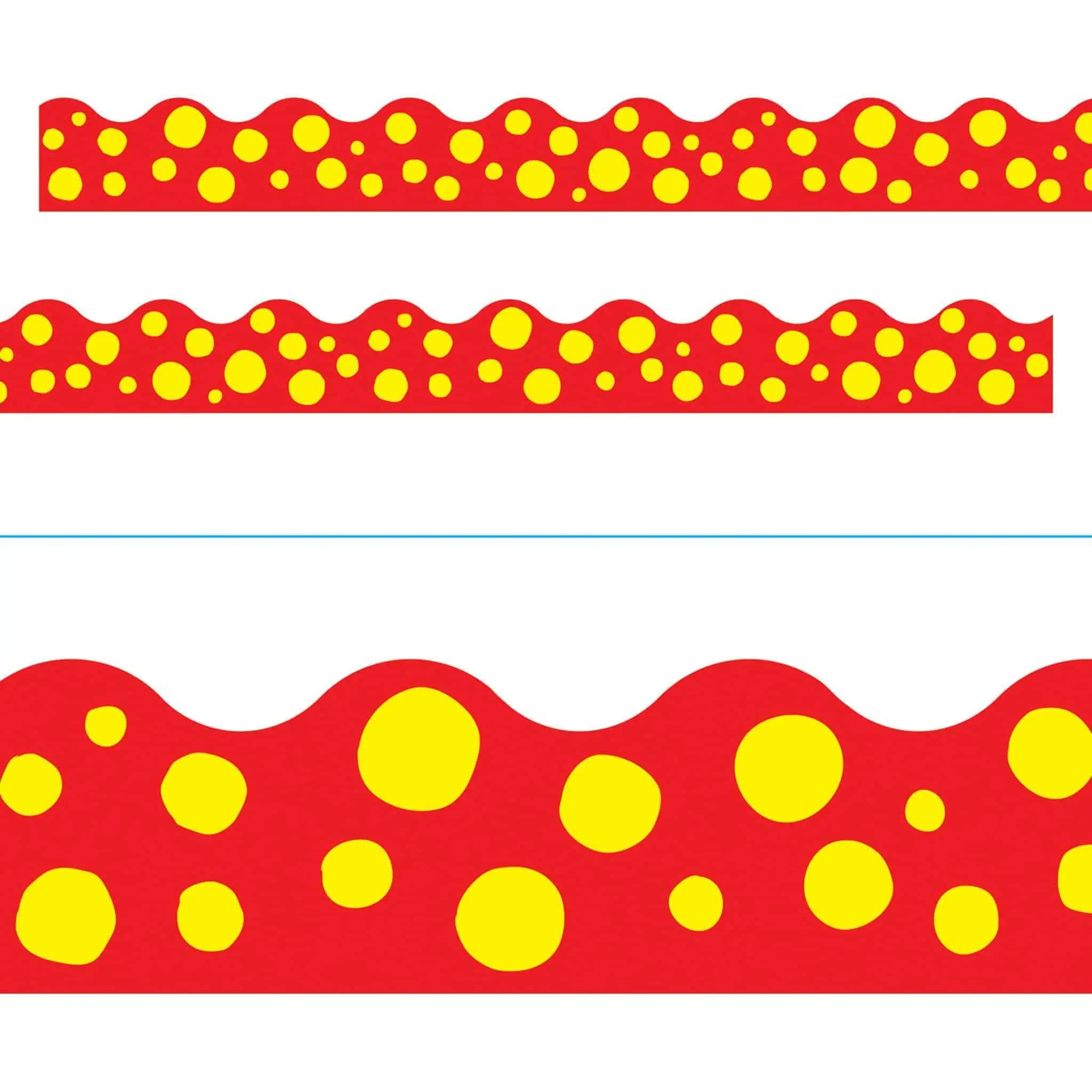 Decorate classrooms and enhance learning environments with durable Terrific Trimmers. Great for parties, meeting rooms, lobbies, break areas. Handy for art and craft projects, too. Colors and designs coordinate with TREND décor. Pack of pre-cut, scalloped trimmer measures 2 1/4″ x 39′.