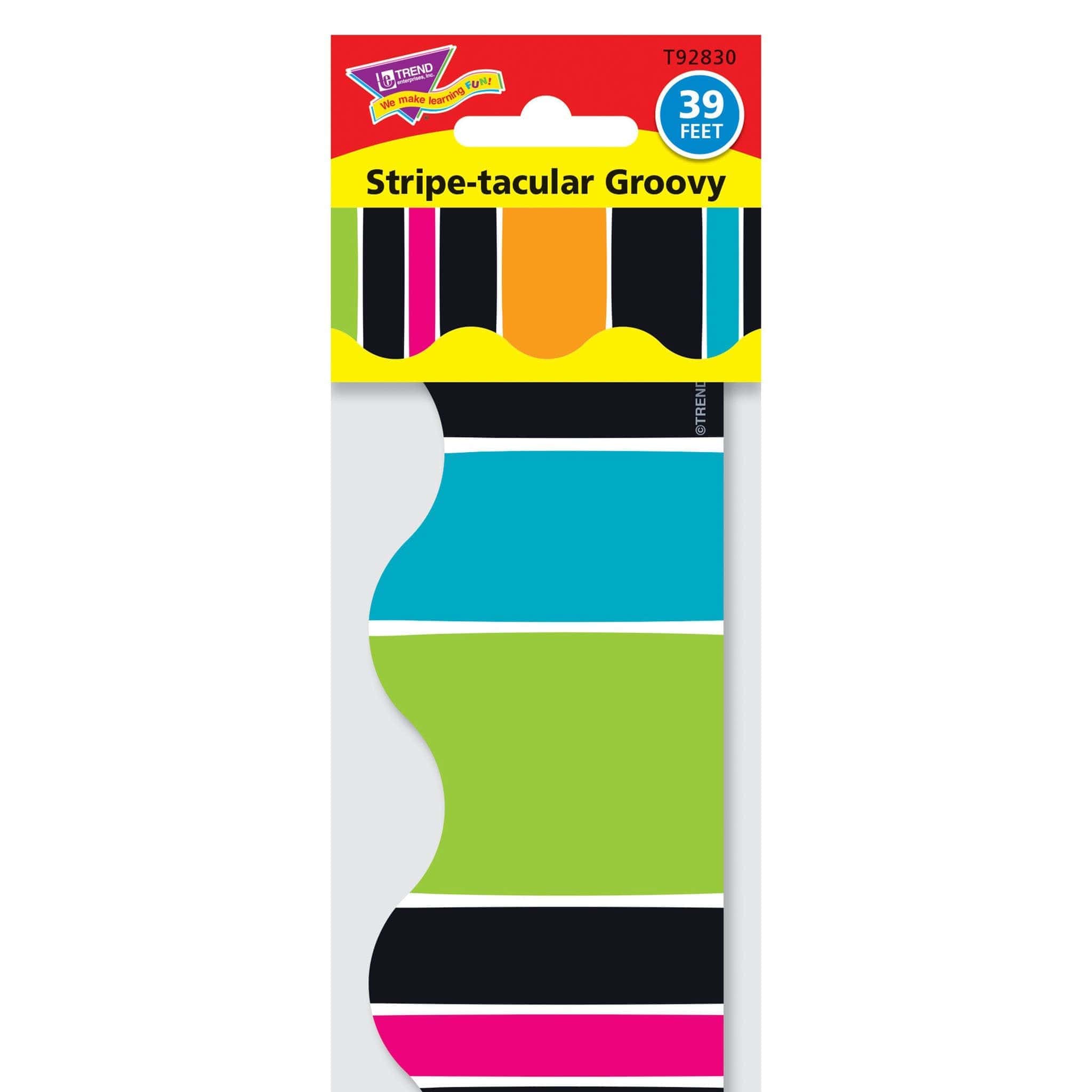 Decorate classrooms and enhance learning environments with durable Terrific Trimmers. Great for parties, meeting rooms, lobbies, break areas. Handy for art and craft projects, too. Colors and designs coordinate with TREND décor. Pack of pre-cut, scalloped trimmer measures 2 1/4″ x 39′.