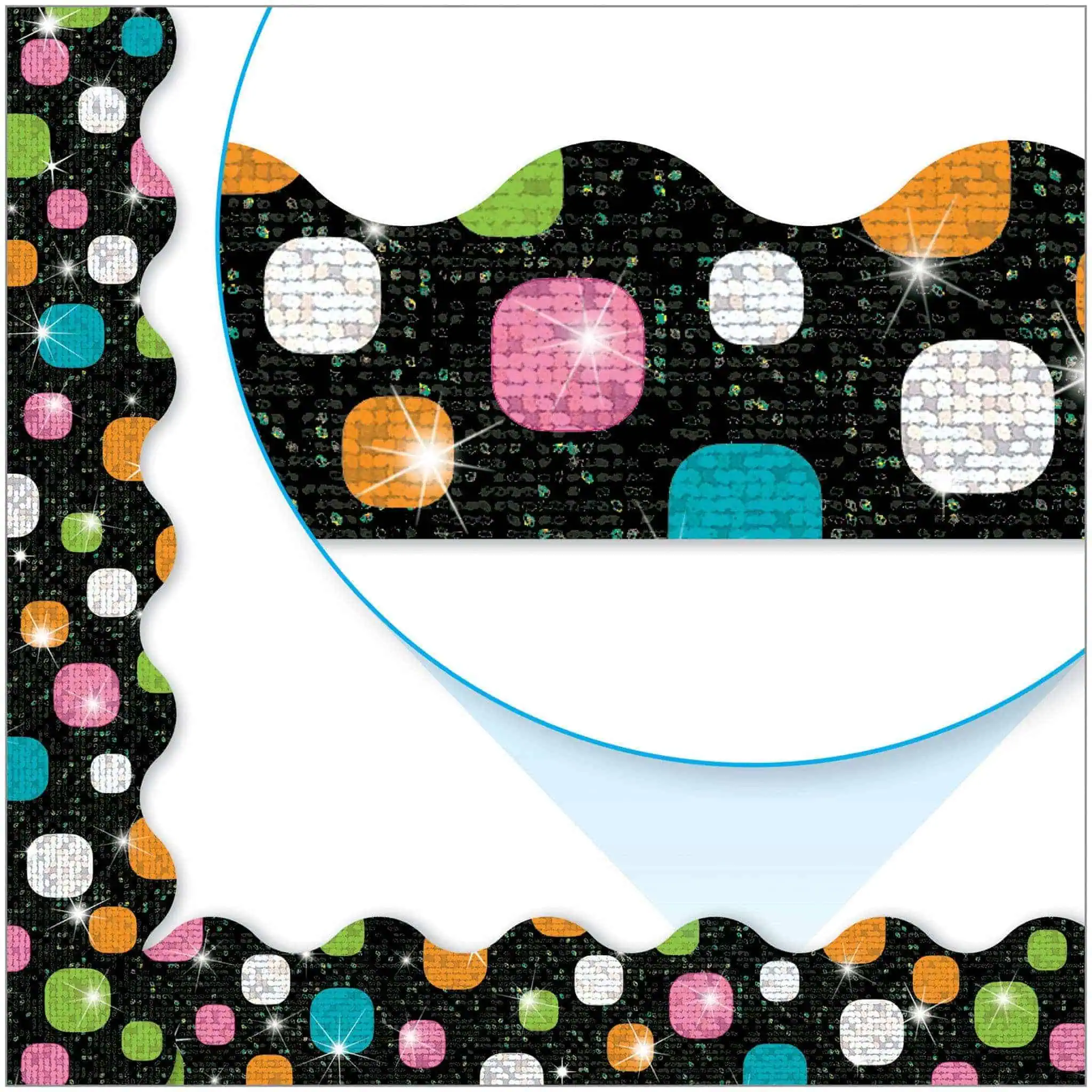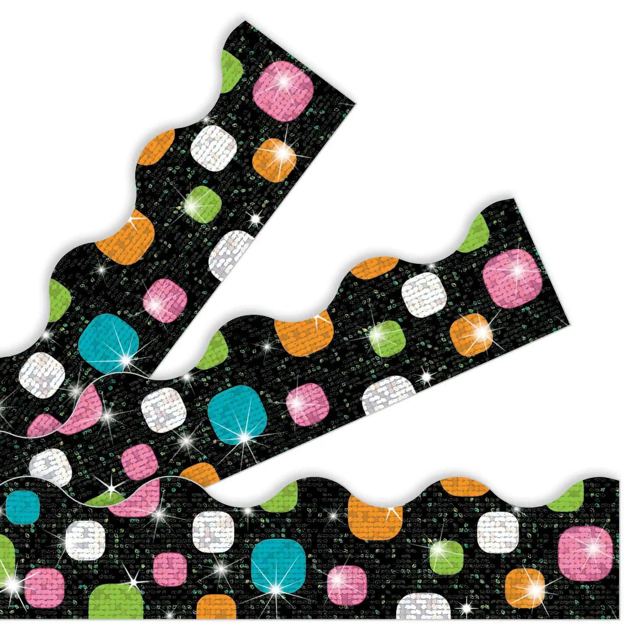 Decorate classrooms and enhance learning environments with durable Terrific Trimmers. Brilliant color and dazzling pattern. Match with TREND Sparkle Ready Letters for extra attention! Great for parties, meeting rooms, lobbies, break areas. Handy for art and craft projects, too. Reusable, pre-cut, and scalloped trimmer measures 2 1/4″ x 32 1/2′.