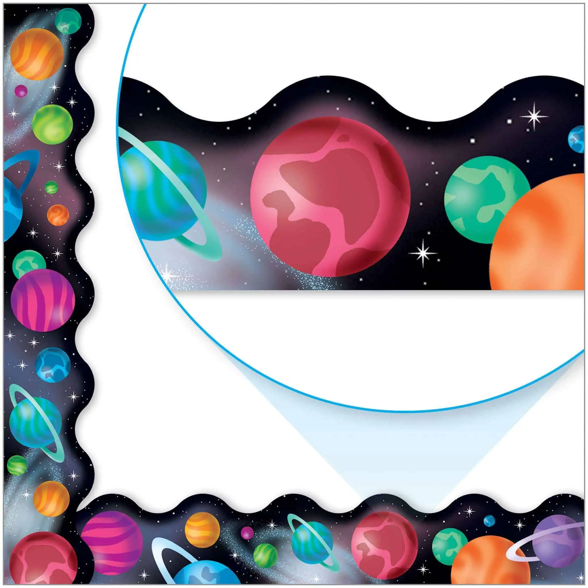 Set the theme for your bulletin board sets, announcements, and calendars with fun patterns and bold artwork. Great for parties, meeting rooms, lobbies, break areas. Handy for art and craft projects, too. Reusable, pre-cut, and scalloped trimmers are 2 1/4″ wide, with 32 1/2′ in a pack.