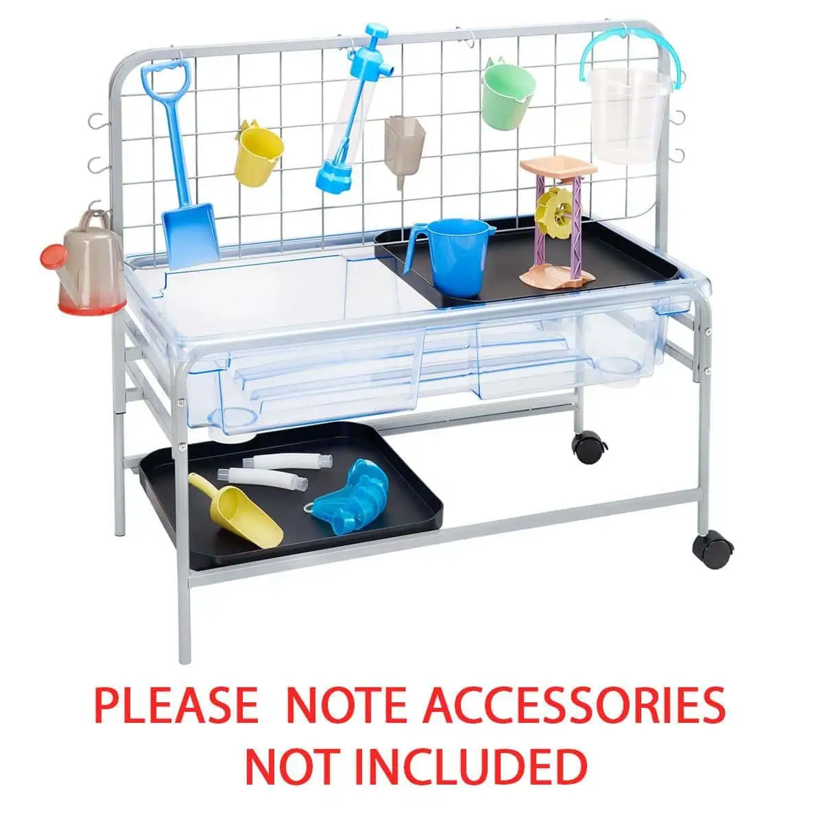 Set includes: 1 water tray, 2 lids, activity frame and 1 stand (Please Note additional accessories not included)