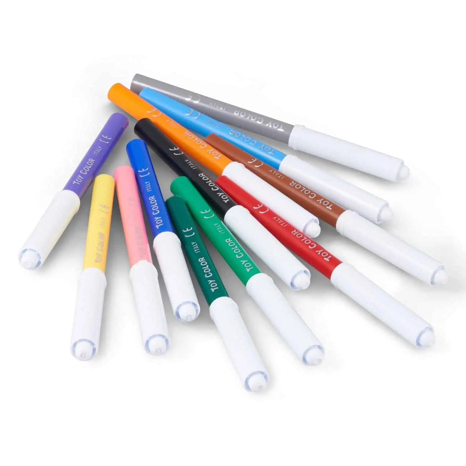 Fibre felt tip pen with a fine tip (2.8mm diameter). Super washable water based ink which is washable from your hands and from most textiles.12 vibrant coloured markers (6 of each) make colouring and drawing fun and creative for kids.