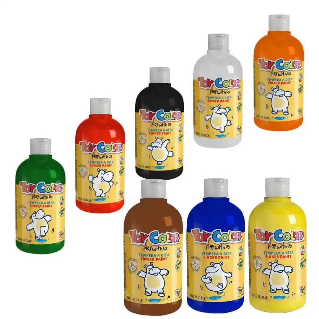 Finger paint is children’s best gateway to the world of color expression, as it is not “mediated” by tools such as brushes. The child can touch the color directly and use it with total immediacy. The soft and creamy texture, ease of use, brilliance and coverage will win over the enthusiasm of little artists. The colors are non-toxic and odorless.