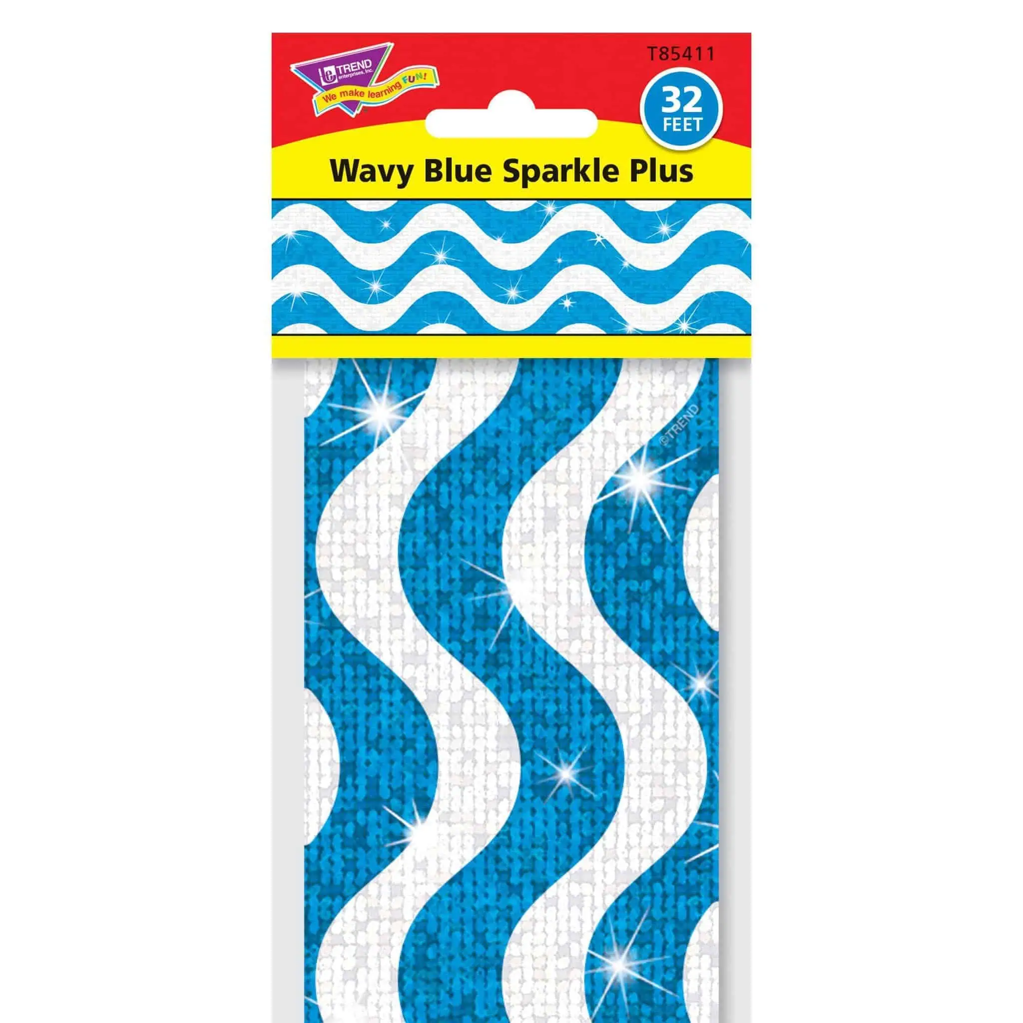 Add a special touch to displays with rich sparkle borders. Straight-edge design fits easily into any space. Layer with patterned borders for an eye-catching look. 2 3/4” x 32 1/2′ per pack; 10 strips. Precut, durable, reusable.