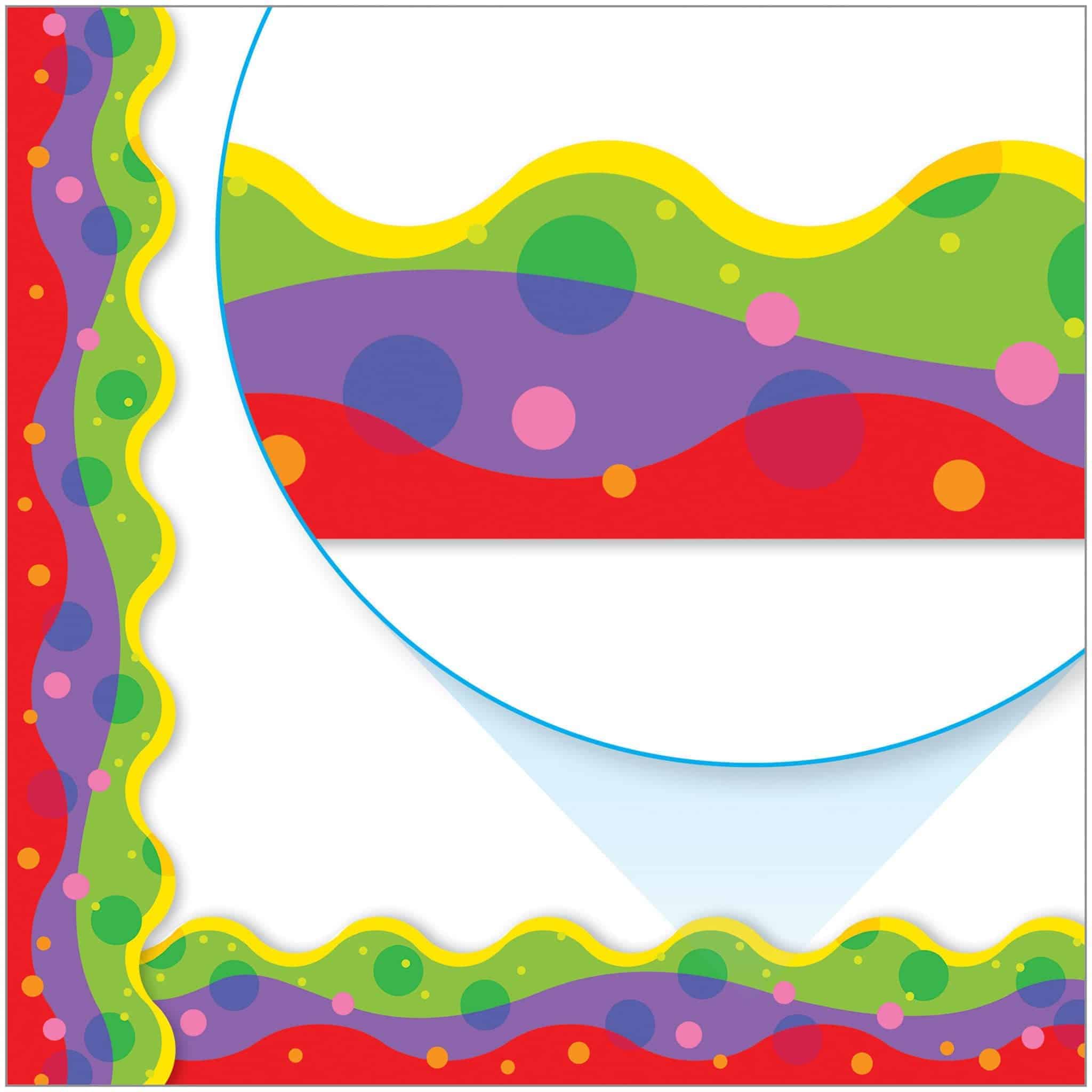 Set the theme for your bulletin board sets, announcements, and calendars with fun patterns and bold artwork. Great for parties, meeting rooms, lobbies, break areas. Handy for art and craft projects, too. Reusable, pre-cut, and scalloped trimmers are 2 1/4″ wide, with 32 1/2′ in a pack.