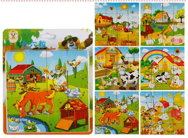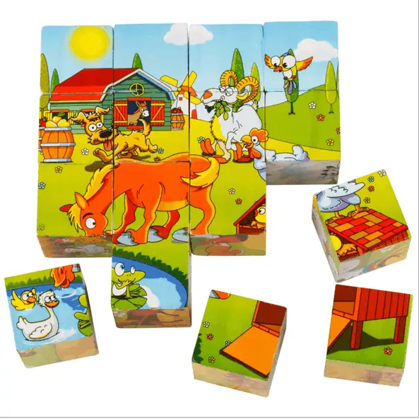 Wooden 6 sided Blocks 16pcs jigsaw puzzle baby young children benefit puzzle 3-5 years