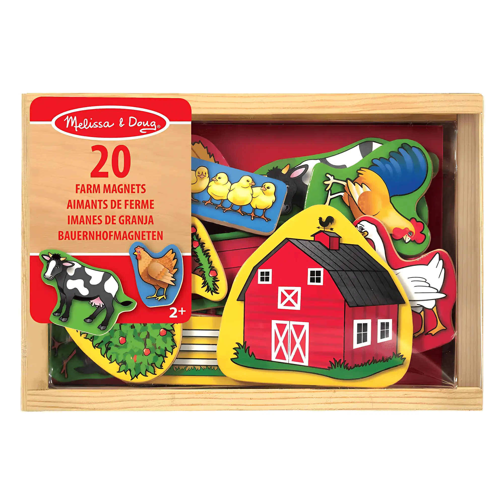 Includes 20 fridge magnets with animals and buildings on the farm. Colorful magnets will help your child get to know pets and life on the farm. With this set, your little one will have great fun arranging pictures on the fridge.The magnets are made of high-quality wood, which makes it possible to enjoy the fun for many years. The product is carefully finished. The set is packed in a wooden box.Set includes:20 fridge magnets