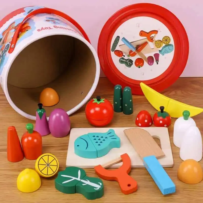 Toy Advantage: Train your baby”s hands, brain, eye coordination, coordination, baby”s muscle activity, and improve fine motor skills such as lifting, grasping, fixing or balancing.Montessori Early Learning Toys: Children”s kitchens and shops mimic popular everyday scenes, letting your child learn to share and communicate with friends or with you in everyday life and in a fun way.Explore Healthy Food Toys: Using wooden cutting tools, your child learns the shape, color, name and inner life of basic types of vegetables in a fun way as early as possible.Suitable age and material: natural mountain wood, eco-friendly color, velcro toys bring joyful cutting action for all boys and girls 2 years old and older due to rounded edges and locked size.The perfect gift: When you are ready to buy gifts for your child”s birthday, children”s day, Christmas and kindergarten graduation ceremony, it will be a very suitable choice.