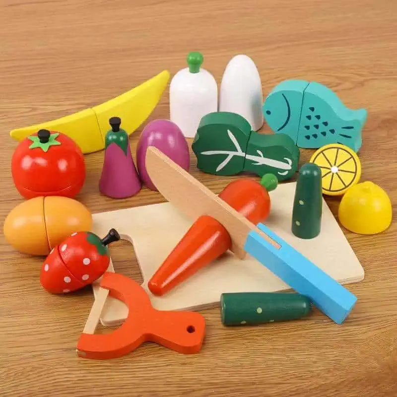 Wooden Kitchen Toys Cutting Fruits Vegetables