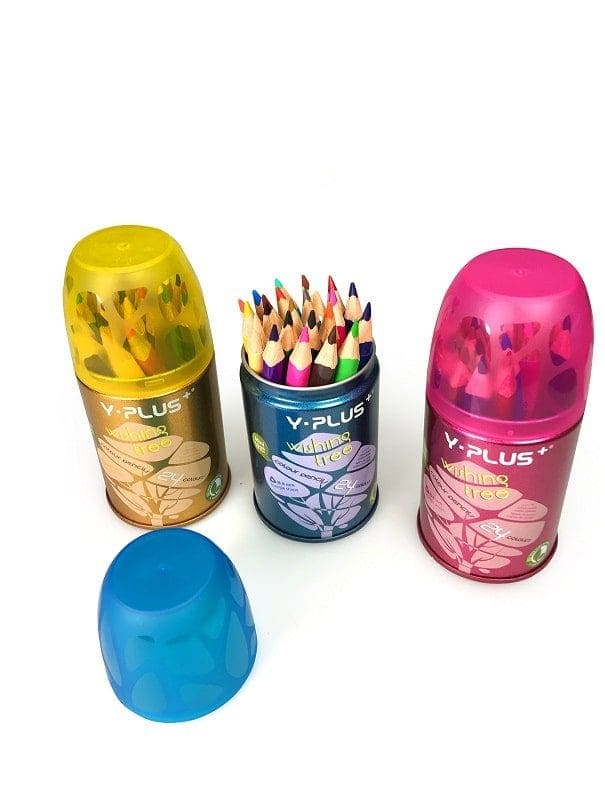 Y-Plus Wishing Tree 24 Short Coloring Pencils Round Steel case